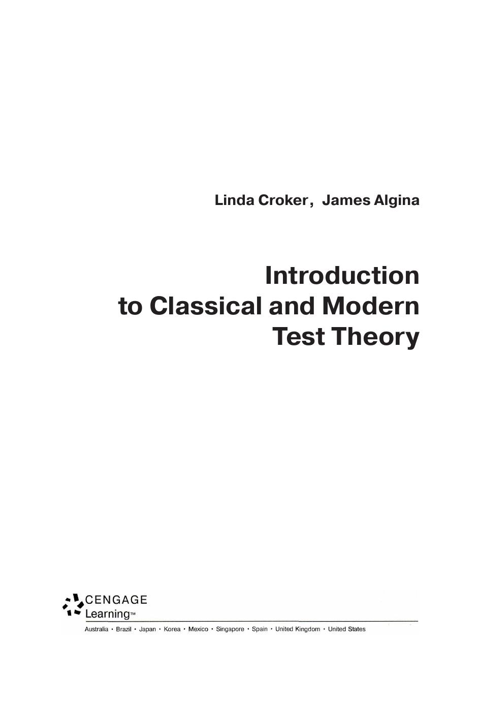 Раскрыта сущность теории тестов, показаны преемственность и отличия ее классической и современной версий. Изложено введение в теорию измерений. Представлены статистические концепции в теории тестирования. Дано введение в шкалирование, показан процесс конструирования тестов. Раскрыто понятие надежности в контексте классической концепции истинной оценки и разработки процедур оценивания справедливости тестов. Освещена проблема валидности тестов и изложены пути ее решения. Охарактеризованы тестовые оценки и методы их интерпретации. Каждая глава содержит краткие выводы и упражнения на закрепление полученного материала и проверку знаний. Для студентов высших учебных заведений, получающих образование по педагогическим специальностям и направлениям, а также для слушателей учреждений повышения квалификации и переподготовки учителей и препо- давателей. Может использоваться в учебном процессе вузов при подготовке социологов, психологов, экономистов, представителей других областей социально-гуманитарных наук, знания, применяющих тесты для измерения и оценки чело- веческих способностей, знаний и качеств, а также явлений и процессов обще- ственной и культурной жизни. Представляет особый интерес для ученых и специалистов, занимающихся проблемами измерений.