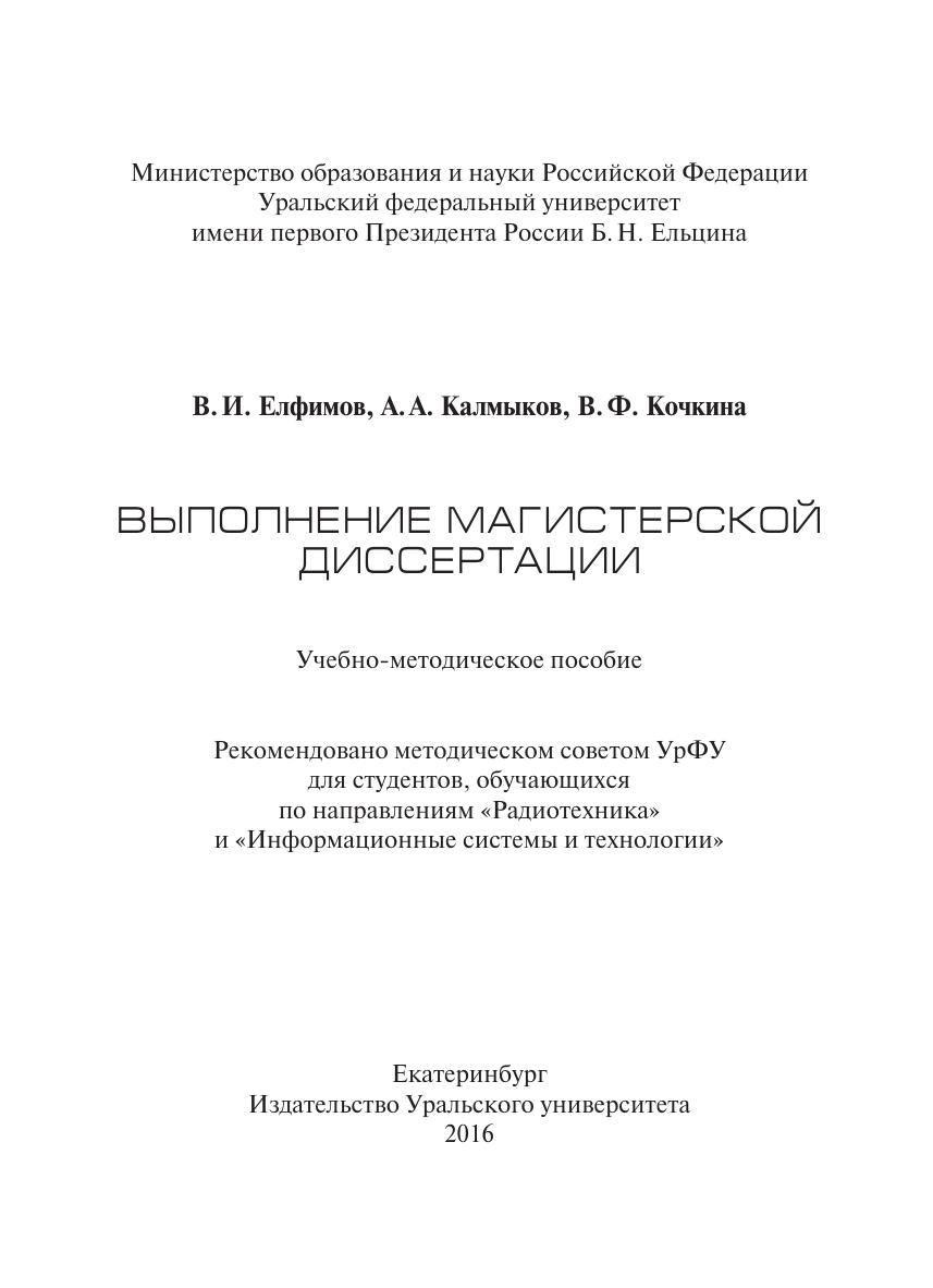 Выполнение магистерской диссертации: учебно-методическое пособие