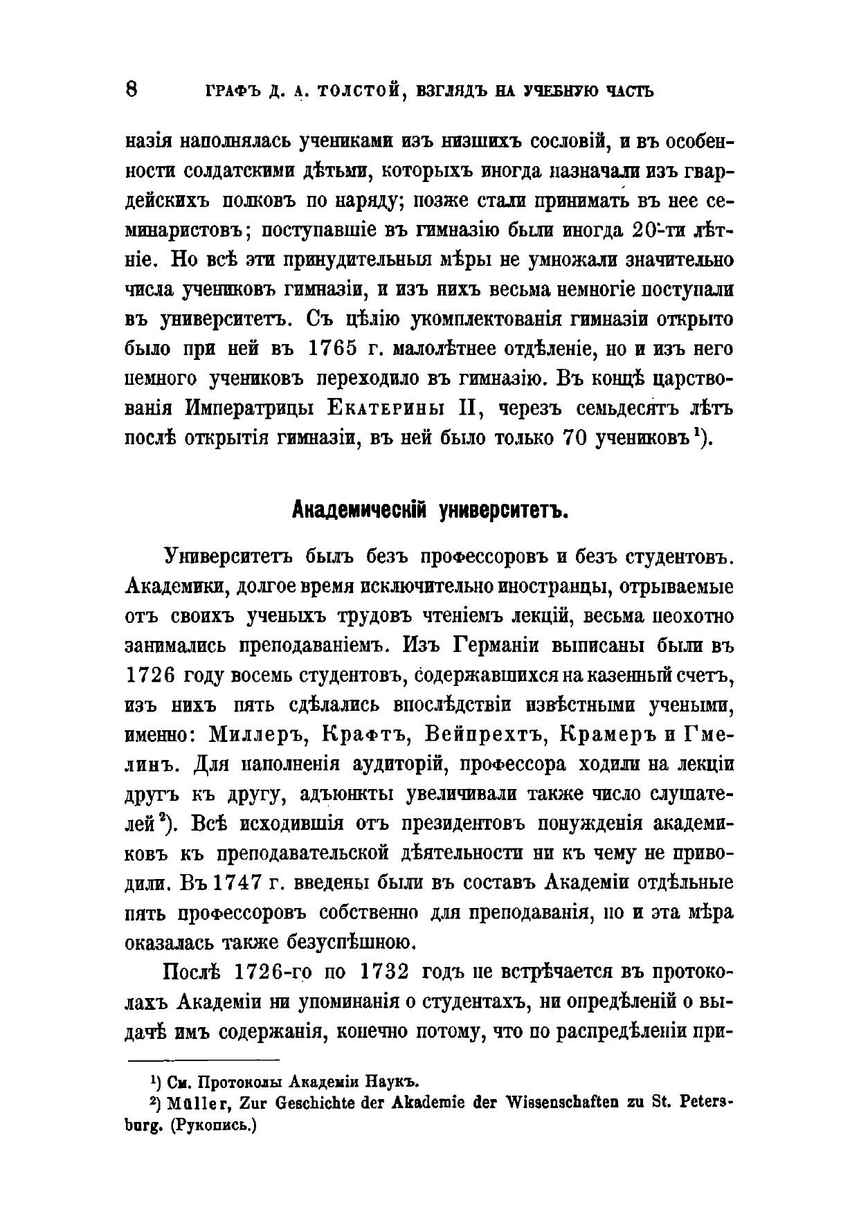 Взгляд на учебную часть в России в XVIII столетии до 1782 года
