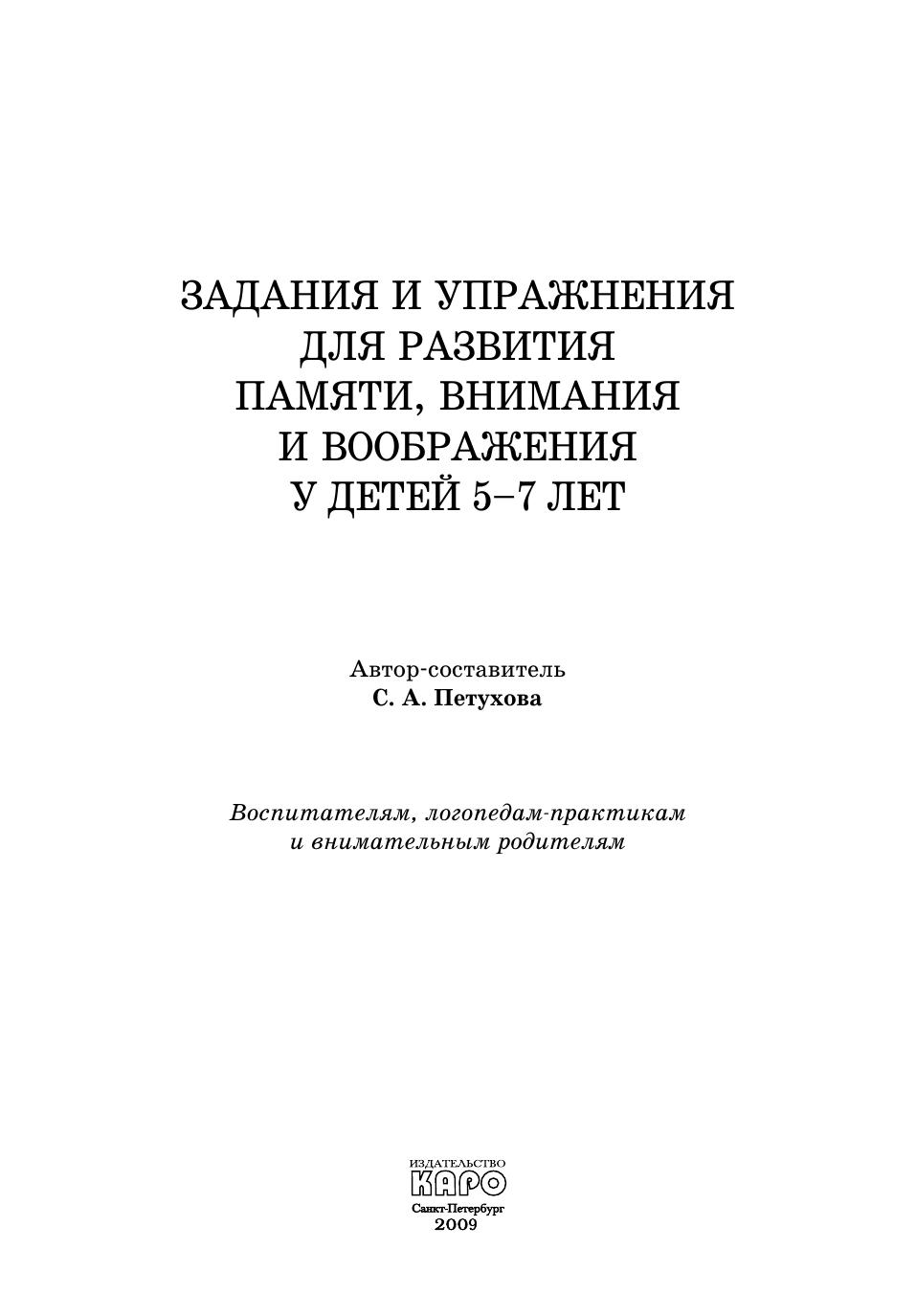Задания и упражнения для развития памяти, внимания и воображения у детей 5–7 лет