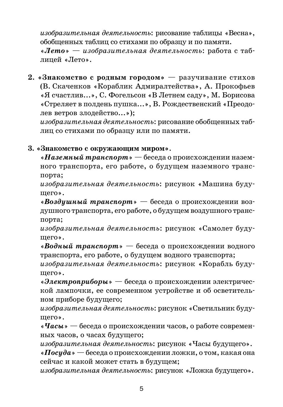 Задания и упражнения связаны со всеми лексическими темами, изучаемыми в дошкольном образовательном учреждении. Разнообразен текстовый материал книги — стихотворения о временах года и о родном городе; истории о происхождении наземного, воздушного и водного транспорта, электрической лампочки, часов, посуды, обуви, одежды, жилища, игрушек, головных уборов («Что было до…»); загадки-задачки и стихотворения о числах. Задания предлагают ребенку