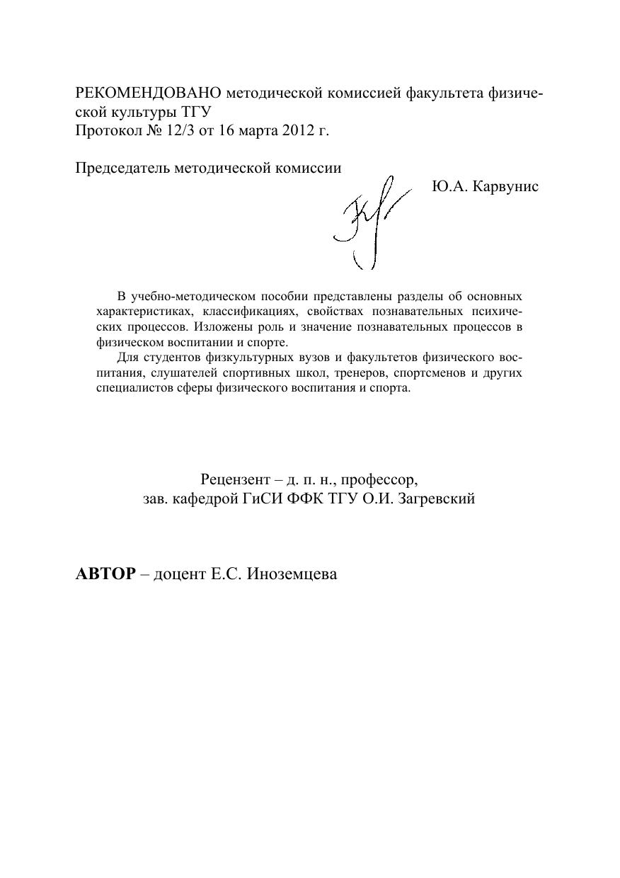 Познавательные психические процессы в физическом воспитании и спорте