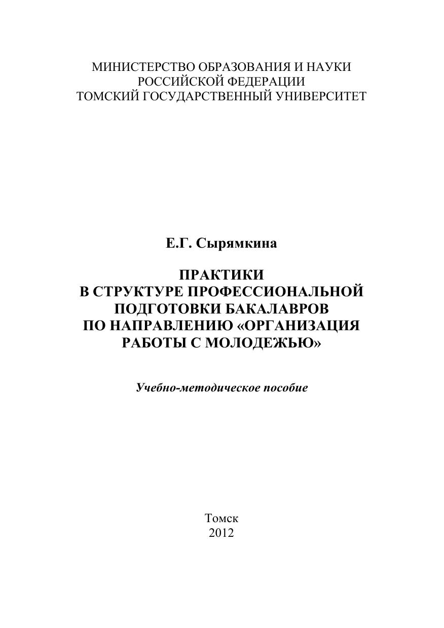 Учебно-методическое пособие по организации учебных и производственных практик содержит программы, методические рекомендации к программам и руководство по составлению необходимых отчетных документов. Пособие адресовано студентам-бакалаврам по направлению подготовки «Организация работы с молодежью» (040700), а также преподавателям и специалистам учреждений, осуществляющим руководство их практиками.