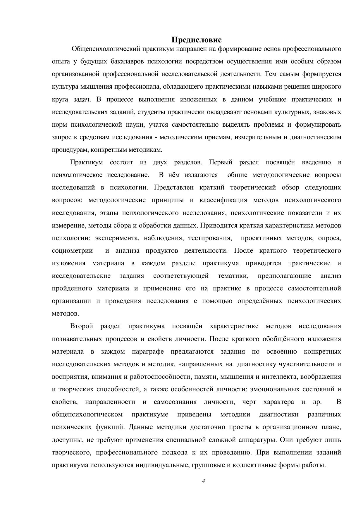 Излагается система практических и исследовательских заданий, направленных на формирование целостных представлений о психологической науке, освоение конкретных исследовательских методов и методик, выработку практических навыков, необходимых для решения широкого круга прикладных задач психологии. Приведённые в практикуме психодиагностические методики позволяют сформировать представления о разновидностях методов психологического исследования; планировании экспериментальных исследований;