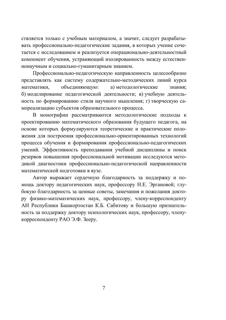 В монографии рассматриваются методологические подходы к проектированию математического образования будущего педагога, на основе которых формулируются теоретические положения по формированию его профессионально-педагогических умений. Разработана методика диагностики профессиональной направленности математической подготовки для повышения эффективности преподавания и изучения дисциплин, а также выявления резервов профессиональной мотивации студентов педагогического вуза. Адресована книга научным и практическим работникам сферы образования, интересующимся вопросами математической подготовки.