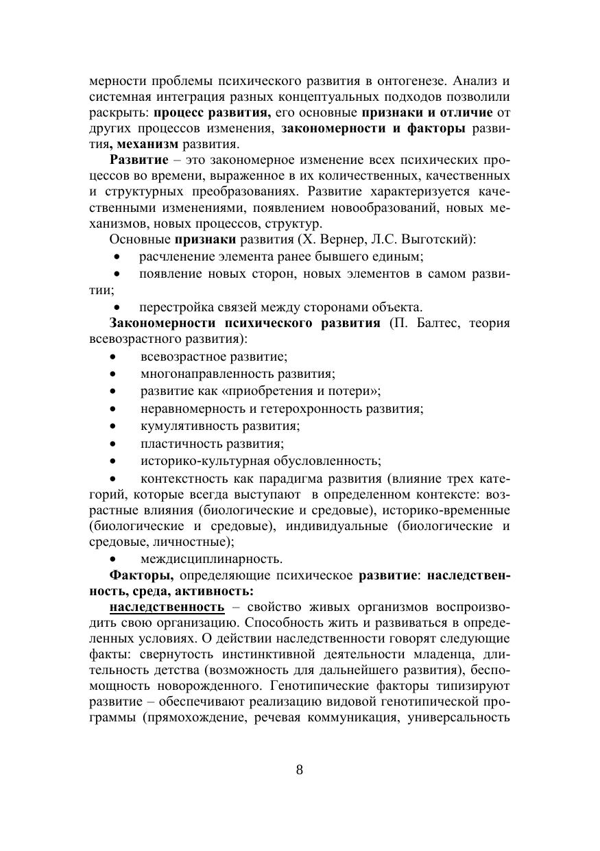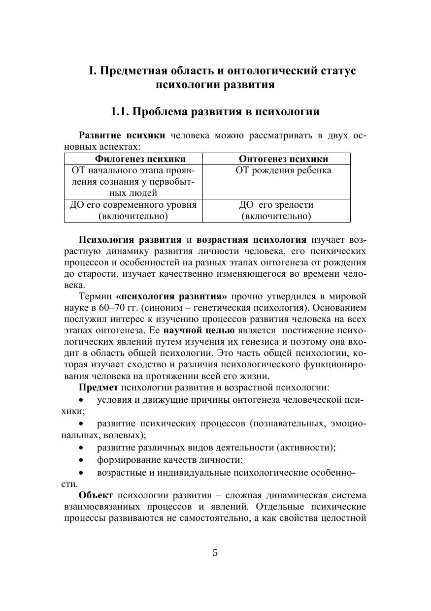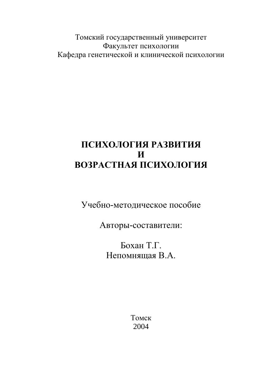 Психология развития является развивающейся отраслью психологических знаний, поскольку требования современной жизни и уровень развития теоретической, экспериментальной и практической психологии поставляют все новые сведения и проблемный материал для решения ее задач. В связи с этим курс «Психология развития и возрастная психология» построен на анализе и системной интеграции различных концептуальных подходов и предполагает: ознакомление с местом психологии развития в системе научных знаний о человеке, с основными подходами к пониманию психического развития, с закономерностями психического с позиции системного подхода, факторами и закономерностями психического развития на различных этапах онтогенеза, получение знаний об основных законах онтогенетического развития, факторах и условиях определяющих психическое развитие в норме, теоретических и методических оснований уровня и нормы психического развития, структуры и динамики возраста, приобретение навыков использования различных концепций психического развития для изучения психической реальности человека и анализа интегративных характеристик психической реальности. Курс разработан для студентов 2 курса факультета психологии.