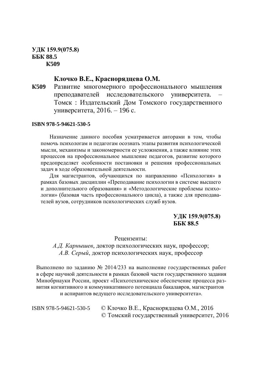 Авторы: Клочко В.Е., Краснорядцева О.М.