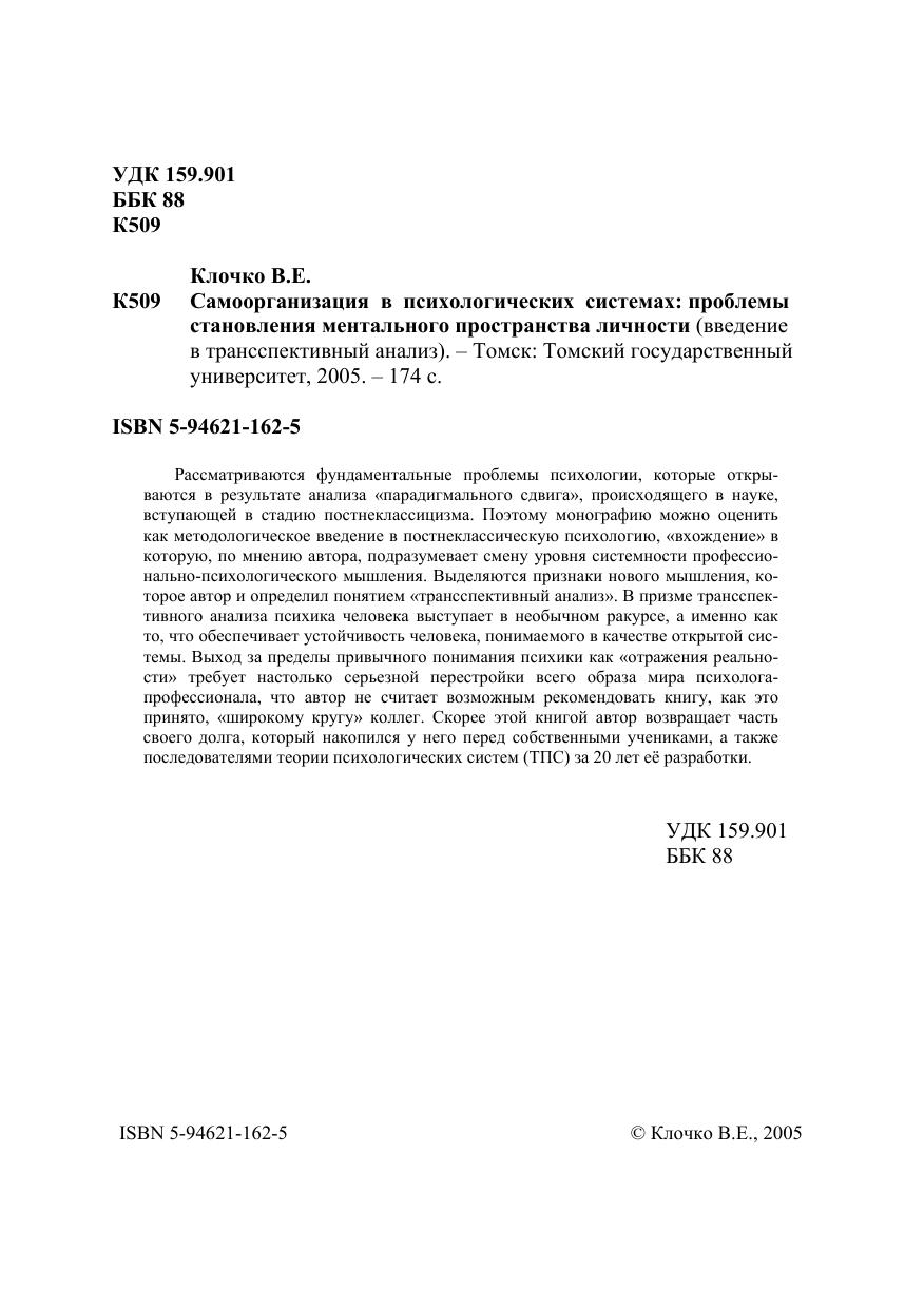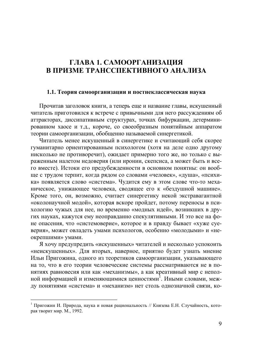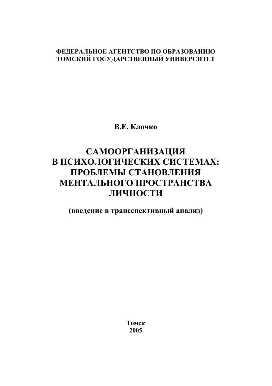 Самоорганизация в психологических системах: проблемы становления ментального пространства личности (введение в трансспективный анализ)