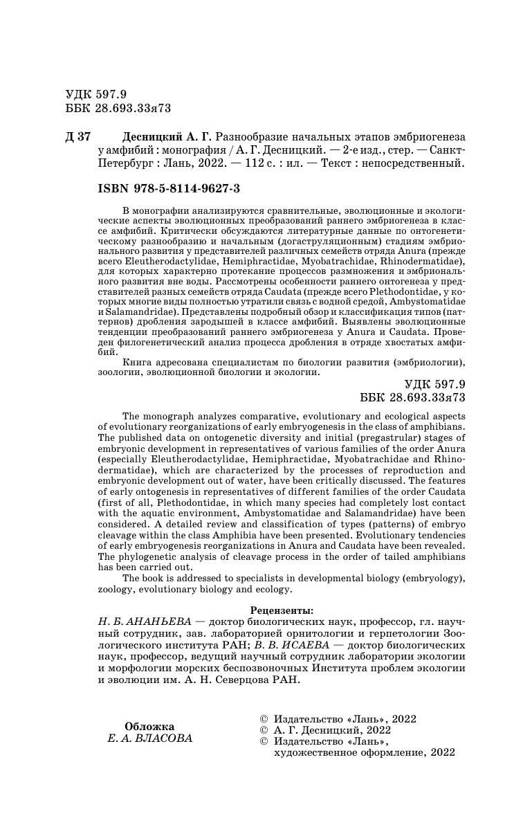 Книга адресована специалистам по биологии развития (эмбриологии), зоологии, эволюционной биологии и экологии.