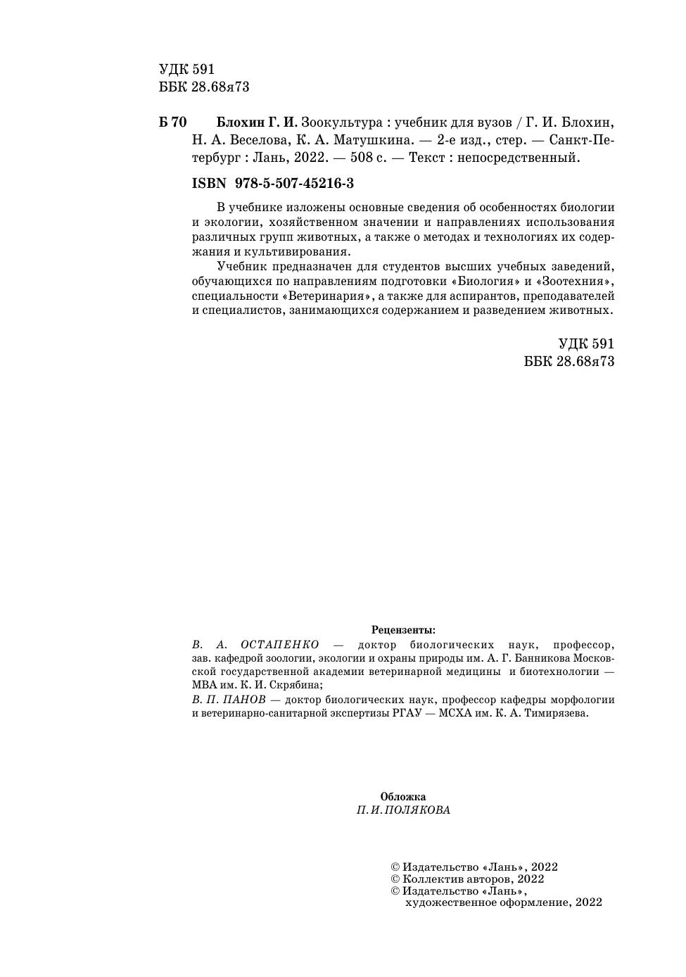 Учебник предназначен для студентов высших учебных заведений, обучающихся по направлениям подготовки «Биология» и «Зоотехния», специальности «Ветеринария», а также для аспирантов, преподавателей и специалистов, занимающихся содержанием и разведением животных.