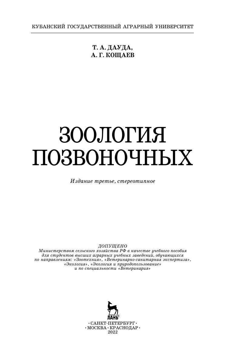 В учебном пособии рассматриваются основные классы типа хордовых животных, представители которых широко распространены по земному шару. Изложение материала осуществле-но по классической схеме. В начале приводятся наиболее общие и характерные признаки систематической группы, затем дается ее морфофизиологическая характеристика и, наконец, рассматриваются представители наиболее важных в практическом и научном отношении отрядов, виды которых встречаются на территории нашей страны. В пособии приводятся характерные биологические позиции видов в связи с экологическими условиями их обитания, а также указывается их значение в природе и отношение к ним человека. Подробно рассмотрены вопросы происхождение и эволюция птиц и млекопитающих и в целом происхождение хордовых. Издание предназначено для студентов биологических факультетов аграрных вузов, выпускающих ветеринарных врачей, зооинженеров и экологов.