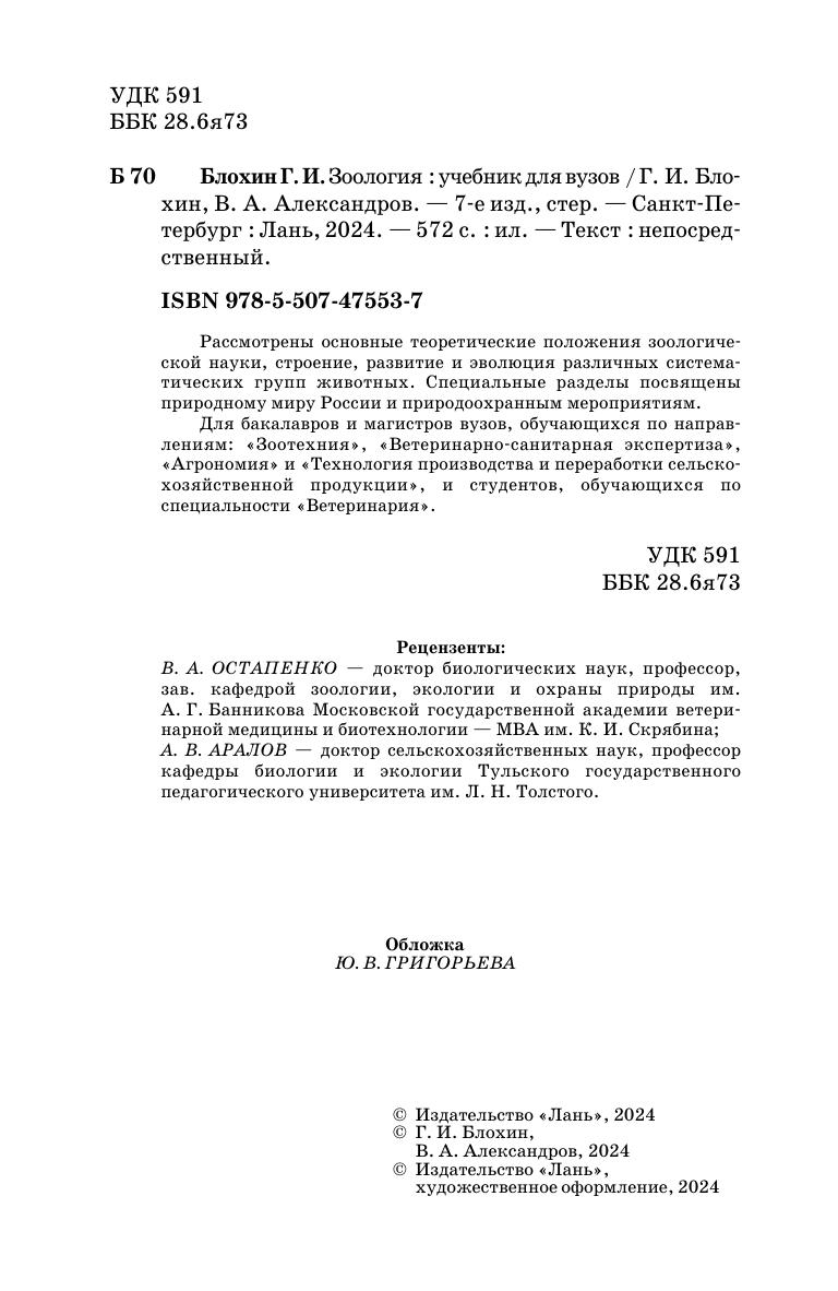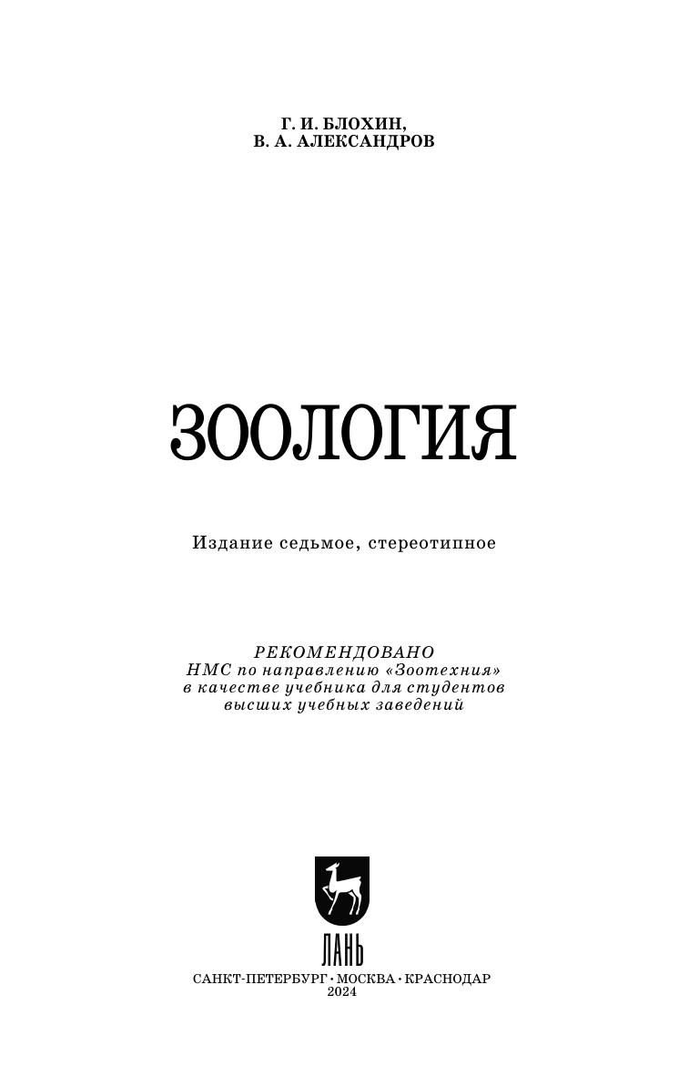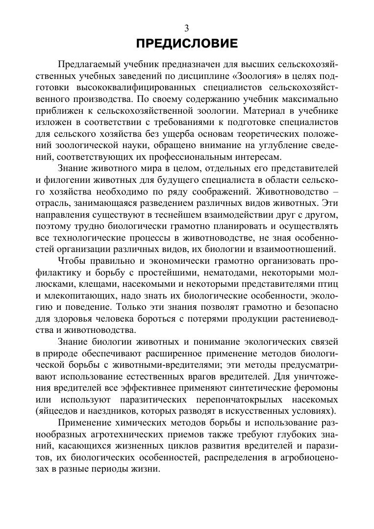 Рассмотрены основные теоретические положения зоологической науки, строение, развитие и эволюция различных систематических групп животных. Специальные разделы посвящены природному миру России и природоохранным мероприятиям. Для студентов вузов по направлениям и специальностям «Зоотехния», «Ветеринария», «Ветеринарно-санитарная экспертиза», «Агрономия — Защита растений» и «Технология производства и переработки сельскохозяйственной продукции».