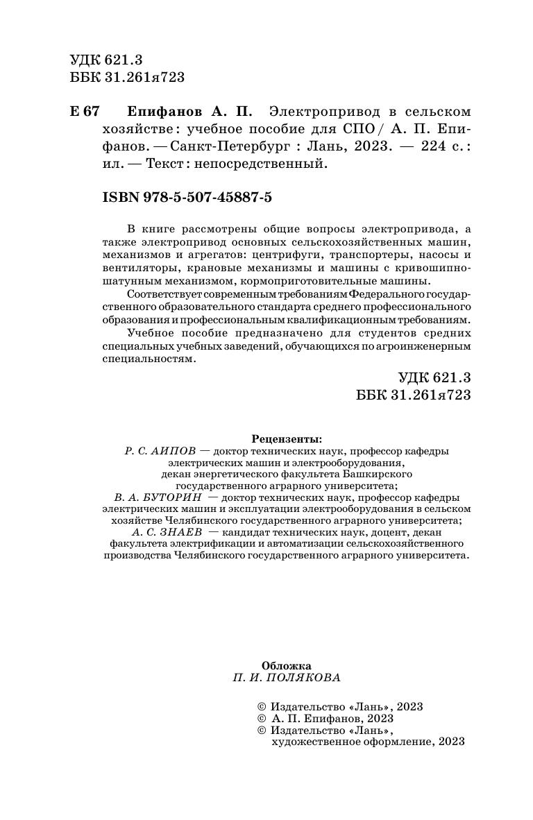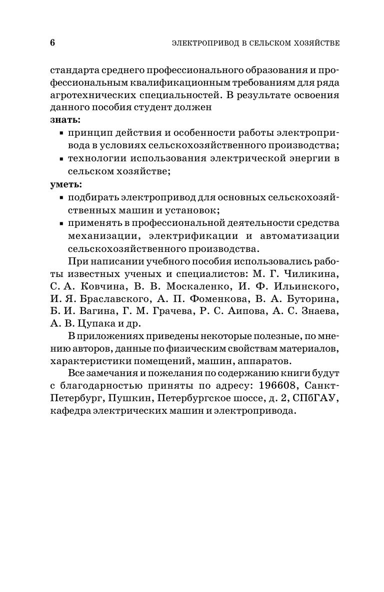 В книге рассмотрены общие вопросы электропривода, а также электропривод основных сельскохозяйственных машин, механизмов и агрегатов: центрифуги, транспортеры, насосы и вентиляторы, крановые механизмы и машины с кривошипно-шатунным механизмом, кормоприготовительные машины. Соответствует современным требованиям Федерального государственного образовательного стандарта среднего профессионального образования и профессиональным квалификационным требованиям. Учебное пособие предназначено для студентов средних специальных учебных заведений, обучающихся по агроинженерным специальностям.
