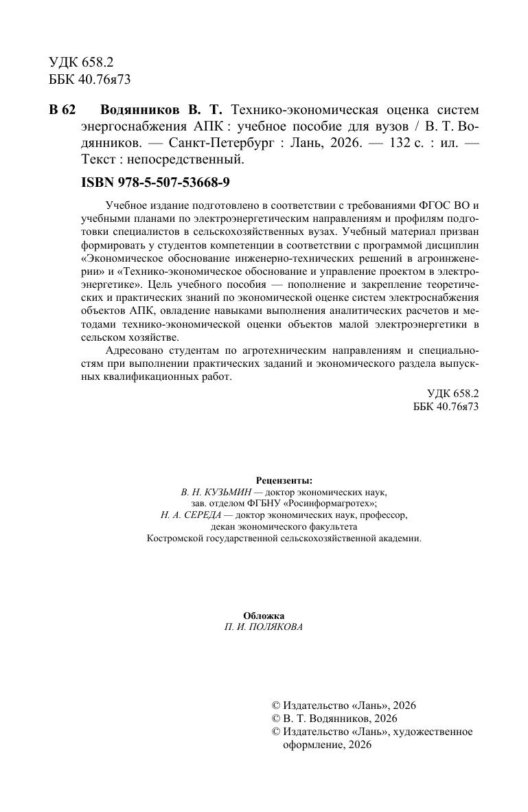 Учебное издание подготовлено в соответствии с требованиями ФГОС ВО и учебными планами по электроэнергетическим направлениям и профилям подготовки специалистов в сельскохозяйственных вузах. Учебный материал призван формировать у студентов компетенции в соответствии с программой дисциплин «Экономическое обоснование инженерно-технических решений в агроинженерии» и «Технико-экономическое обоснование и управление проектом в электроэнергетике». Цель учебного пособия — пополнение и закрепление теоретических и практических знаний по экономической оценке систем электроснабжения объектов АПК, овладение навыками выполнения аналитических расчетов и методами технико-экономической оценки объектов малой электроэнергетики в сельском хозяйстве. Адресовано студентам по агротехническим направлениям и специальностям при выполнении практических заданий и экономического раздела выпускных квалификационных работ.