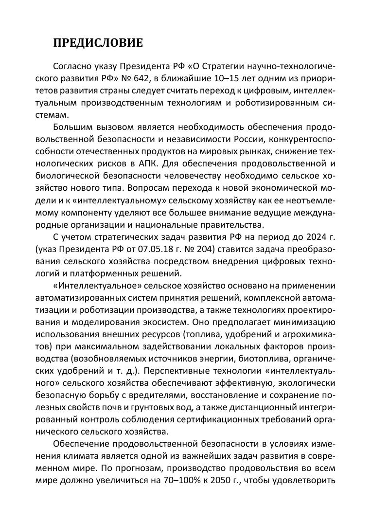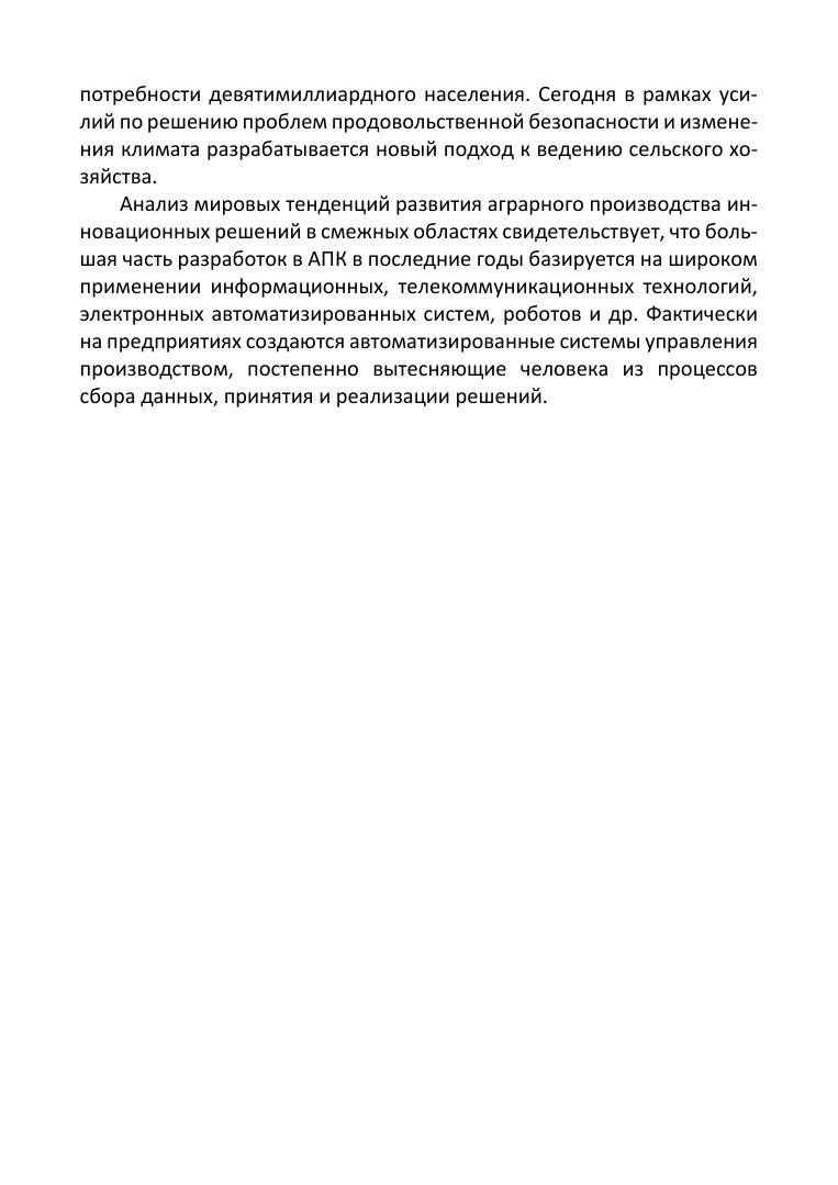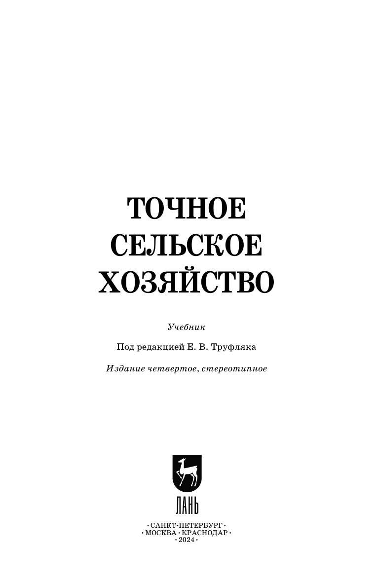 В учебнике точное земледелие и точное животноводство рассматриваются как структурные подсистемы, определяющие инновационное развитие аграрной отрасли, изложена история возникновения точного сельского хозяйства, отражены его состояние в России и в мире, перспективы на будущее.Предназначен для специалистов в области сельского хозяйства, преподавателей, аспирантов и студентов аграрных вузов.