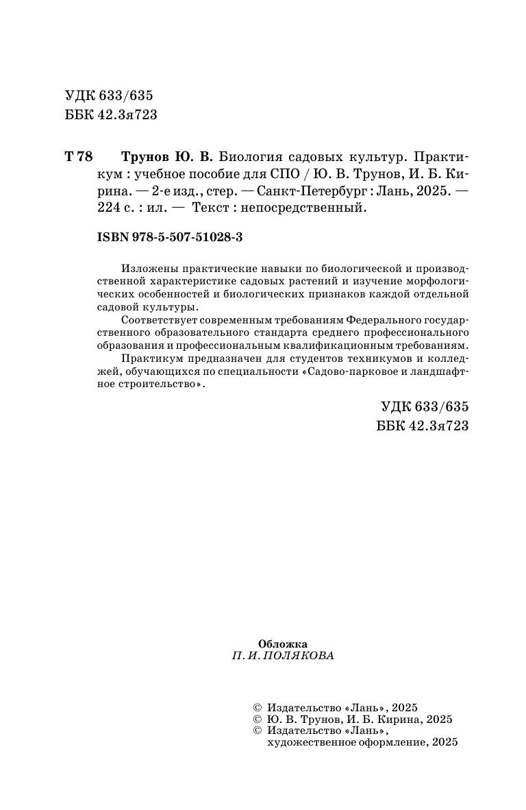 Изложены практические навыки по биологической и производственной характеристике садовых растений и изучение морфологических особенностей и биологических признаков каждой отдельной садовой культуры. Соответствует современным требованиям Федерального государственного образовательного стандарта среднего профессионального образования и профессиональным квалификационным требованиям. Практикум предназначен для студентов техникумов и колледжей, обучающихся по специальности «Садово-парковое и ландшафтное строительство».