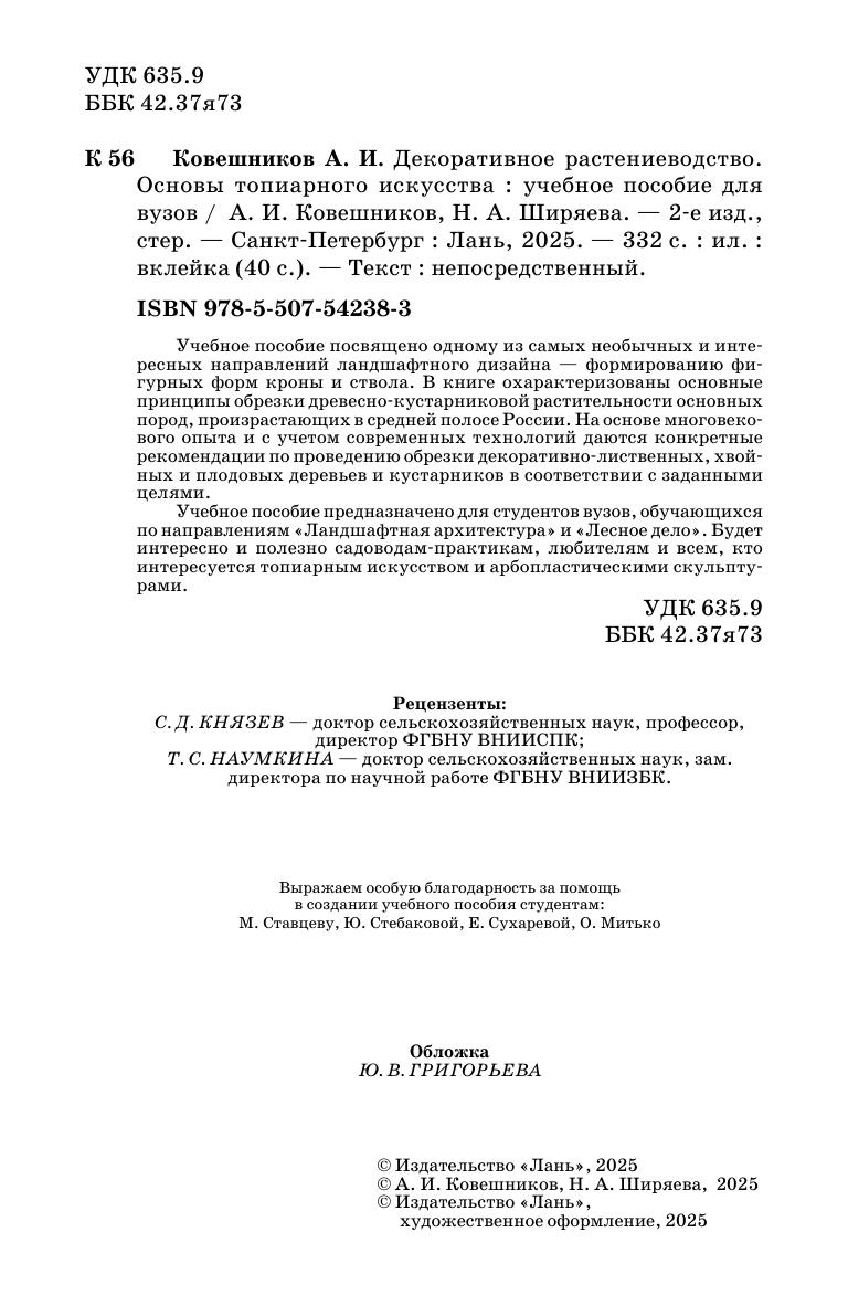 Учебное пособие посвящено одному из самых необычных и интересных направлений ландшафтного дизайна — формированию фигурных форм кроны и ствола. В книге охарактеризованы основные принципы обрезки древесно-кустарниковой растительности основных пород, произрастающих в средней полосе России. На основе многовекового опыта и с учетом современных технологий даются конкретные рекомендации по проведению обрезки декоративно-лиственных, хвойных и плодовых деревьев и кустарников в соответствии с заданными целями. Учебное пособие предназначено для студентов вузов, обучающихся по направлениям «Ландшафтная архитектура» и «Лесное дело». Будет интересно и полезно садоводам-практикам и любителям и всем, кто интересуется топиарным искусством и арбопластическими скульптурами.