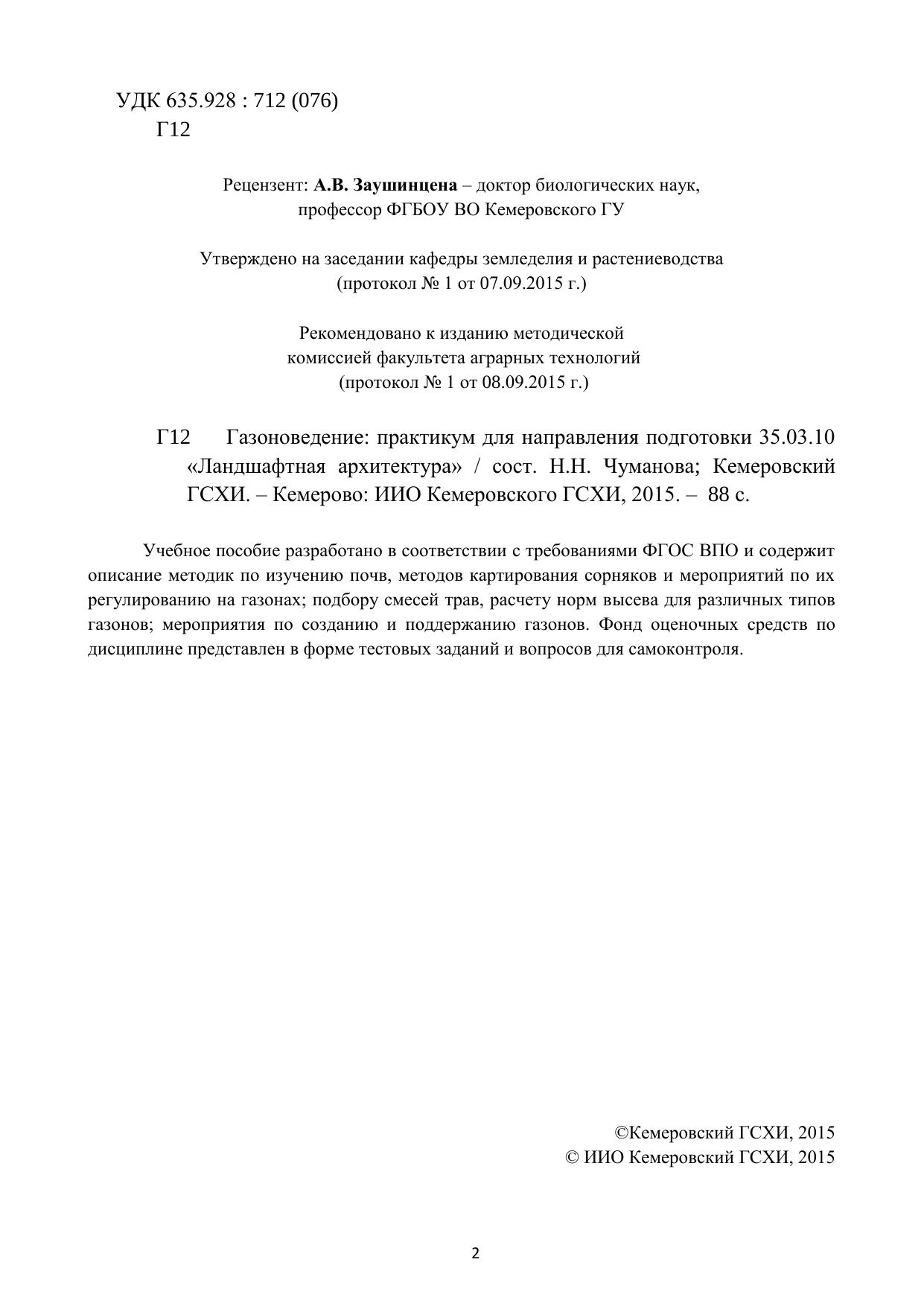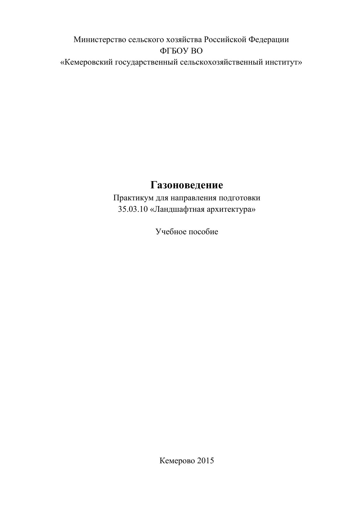 Газоноведение: практикум для направления подготовки 35.03.10 «Ландшафтная архитектура»
