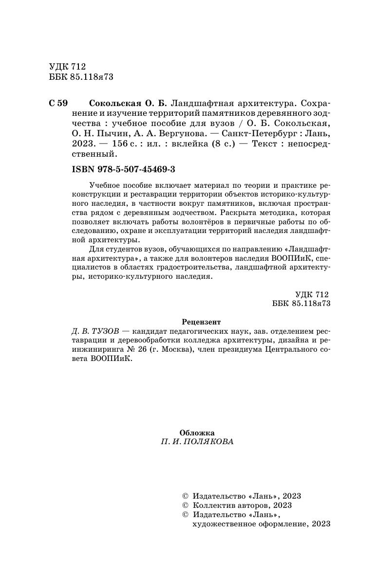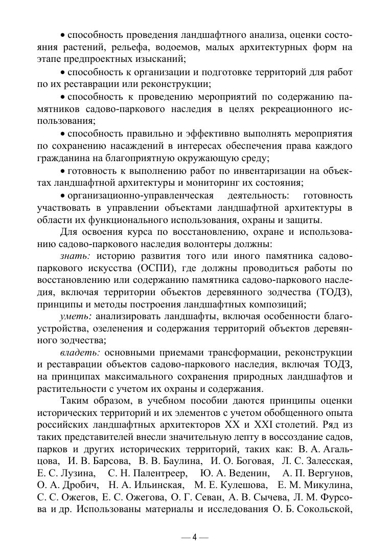 Учебное пособие включает материал по теории и практике реконструкции и реставрации территории объектов историко-культурного наследия, в частности вокруг памятников, включая пространства рядом с деревянным зодчеством. Раскрыта методика, которая позволяет включать работы волонтёров в первичные работы по обследованию, охране и эксплуатации территорий наследия ландшафтной архитектуры. Для студентов вузов, обучающихся по направлению «Ландшафтная архитектура», а также для волонтеров наследия ВООПИиК, специалистов в областях градостроительства, ландшафтной архитектуры, историко-культурного наследия.