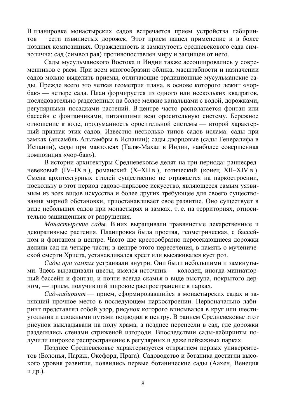 В учебном пособии рассматриваются вопросы благоустройства и озеленения территории объектов ландшафтной архитектуры различных категорий и типов в городах и населенных местах, планировочные, экологические и социальные вопросы их создания. Приводятся отдельные аспекты проектирования городских парков с точки зрения современных функциональных технических, эстетических, экономических требований. Рассматривается порядок и организация проектирования объектов ландшафтной архитектуры, приводятся состав и содержание проектных материалов. Содержание учебного пособия тесно связано с содержанием дисциплин учебного плана «Основы архитектурной графики», «Цветоводство», «Декоративное древоводство с основами дендрологии», «Почвоведение», «Ботаника». Материалы учебного пособия являются теоретической основой для разработки курсовых работ и дипломных проектов. Предназначено для студентов вузов, обучающихся по направлениям подготовки «Садоводство» и «Ландшафтная архитектура».