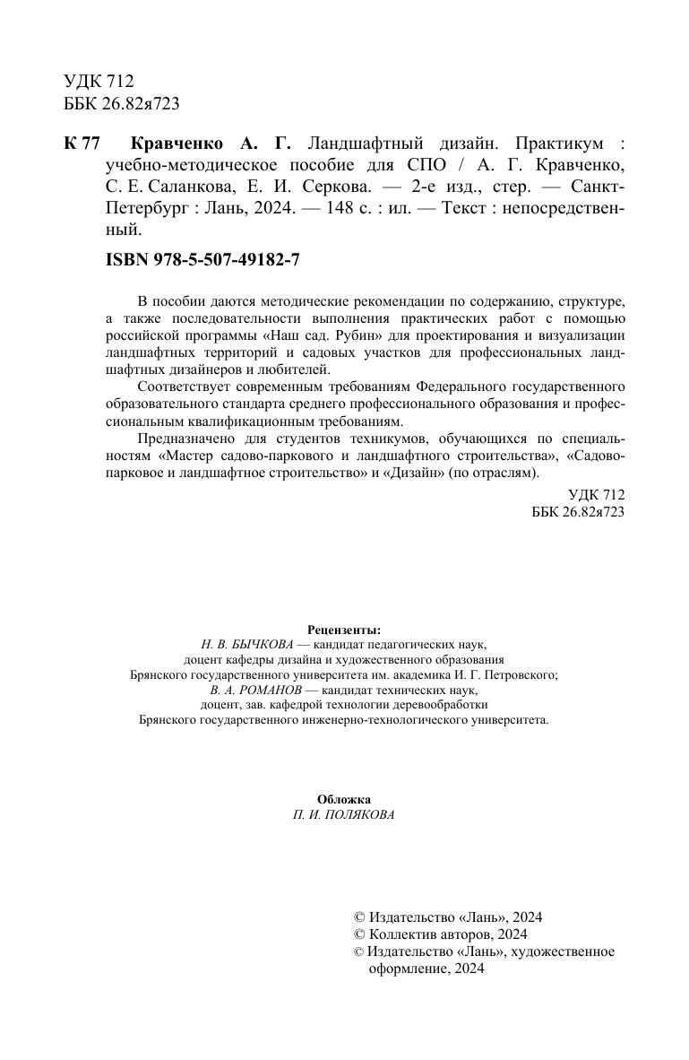 В пособии даются методические рекомендации по содержанию, структуре, а также последовательности выполнения практических работ с помощью российской программы «Наш сад. Рубин» для проектирования и визуализации ландшафтных территорий и садовых участков для профессиональных ландшафтных дизайнеров и любителей. Соответствует современным требованиям Федерального государственного образовательного стандарта среднего профессионального образования и профессиональным квалификационным требованиям. Предназначено для студентов техникумов, обучающихся по специальностям «Мастер садово-паркового и ландшафтного строительства», «Садово-парковое и ландшафтное строительство» и «Дизайн» (по отраслям).