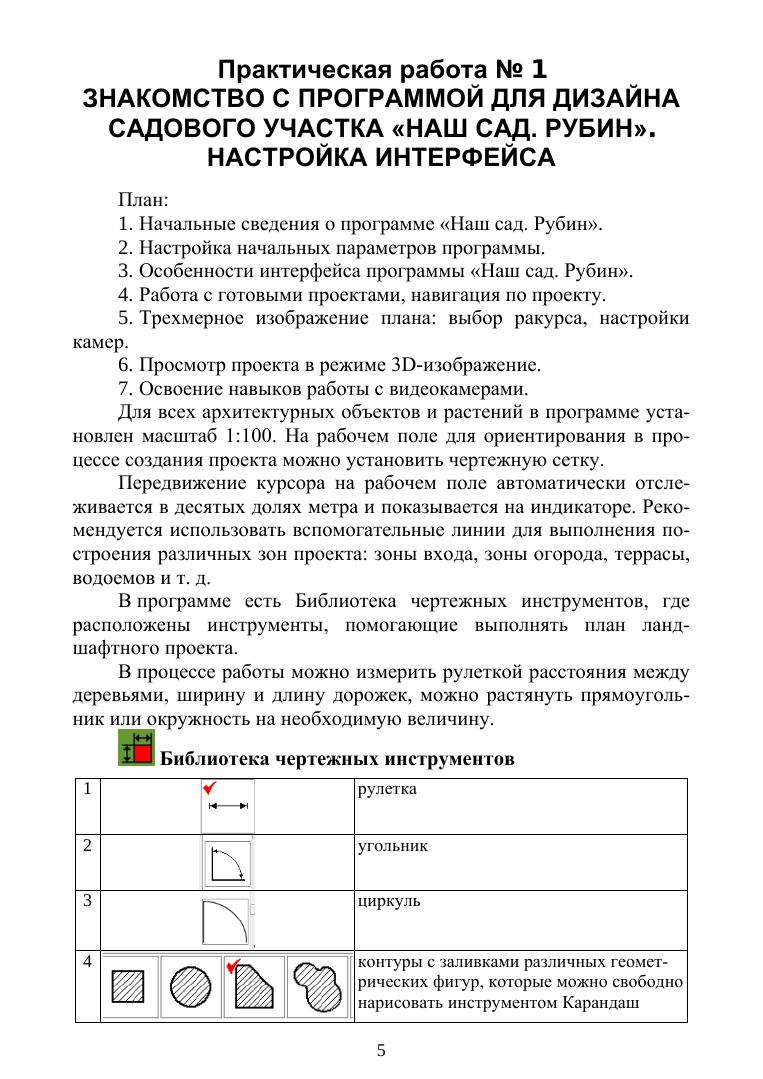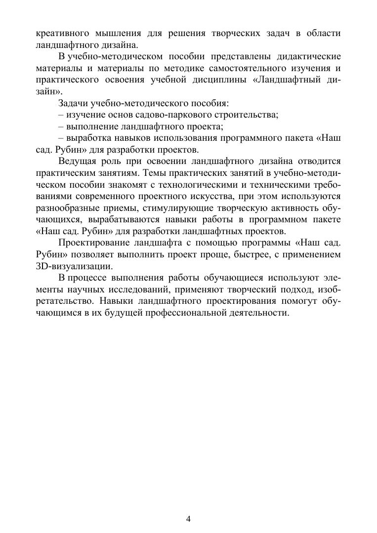 В пособии даются методические рекомендации по содержанию, структуре, а также последовательности выполнения практических работ с помощью российской программы «Наш сад. Рубин» для проектирования и визуализации ландшафтных территорий и садовых участков для профессиональных ландшафтных дизайнеров и любителей. Учебно-методическое пособие разработано для бакалавров по следующим направлениям подготовки: «Профессиональное обучение (по отраслям)», направленность (профиль): «Декоративно-прикладное искусство и дизайн», «Педагогическое образование» (с двумя профилями подготовки), направленности (профили): «Технология», «Безопасность жизнедеятельности», «Садоводство», «Дизайн».