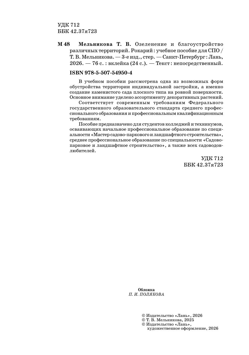 В учебном пособии рассмотрена одна из возможных форм обустройства территории индивидуальной застройки, а именно создание каменистого сада плоского типа на ровной поверхности. Основное внимание уделено ассортименту декоративных растений. Соответствует современным требованиям Федерального государственного образовательного стандарта среднего профессионального образования и профессиональным квалификационным требованиям. Пособие предназначено для студентов колледжей и техникумов, осваивающих начальное профессиональное образование по специальности «Мастер садово-паркового и ландшафтного строительства», среднее профессиональное образование по специальности "Садово-парковое и ландшафтное строительство", а также всех садоводов-любителей.