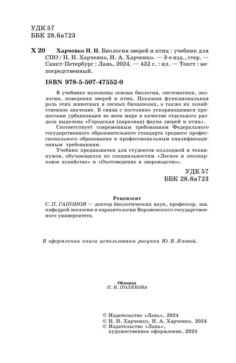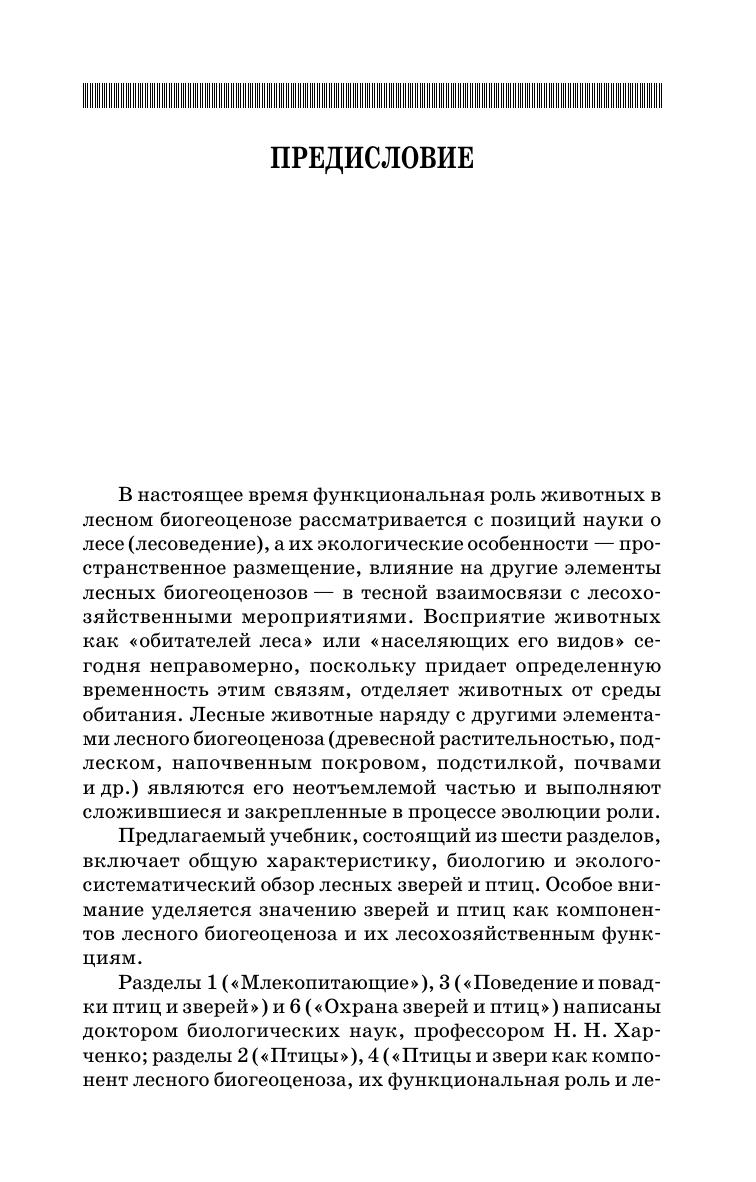 В учебнике изложены основы биологии, систематики, экологии, поведения зверей и птиц. Показана функциональная роль этих животных в лесных биоценозах, а также их хозяйственное значение. В связи с постоянно ускоряющимися процессами урбанизации во всем мире в качестве отдельного раздела выделена «Городская (парковая) фауна зверей и птиц». Соответствует современным требованиям Федерального государственного образовательного стандарта среднего профессионального образования и профессиональным квалификационным требованиям. Учебник предназначен для студентов колледжей и техникумов, обучающихся по специальностям «Лесное и лесопарковое хозяйство» и «Охотоведение и звероводство».