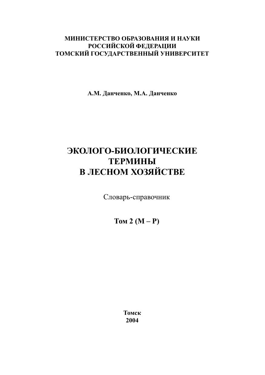 Эколого-биологические термины в лесном хозяйстве: Словарь-справочник. Том 2 (М-П)