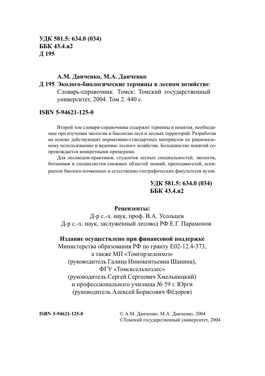 Второй том словаря-справочника содержит термины и понятия, необходимые при изучении экологии и биологии леса и лесных территорий. Разработан на основе действующих нормативно-стандартных материалов по рациональному использованию и ведению лесного хозяйства. Большинство понятий сопровождается конкретными примерами. Для лесоводов-практиков, студентов лесных специальностей, экологов, ботаников и специалистов смежных областей знаний, преподавателей, аспирантов биолого-почвенных и естественно-географических факультетов вузов.