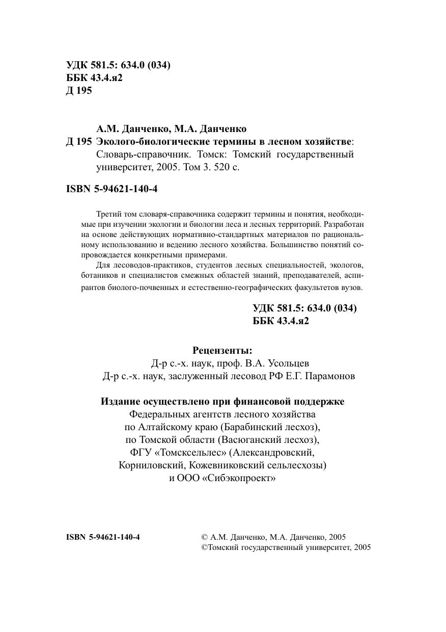 Третий том словаря-справочника содержит термины и понятия, необходимые при изучении экологии и биологии леса и лесных территорий. Разработан на основе действующих нормативно-стандартных материалов по рациональному использованию и ведению лесного хозяйства. Большинство понятий сопровождается конкретными примерами. Для лесоводов-практиков, студентов лесных специальностей, экологов, ботаников и специалистов смежных областей знаний, преподавателей, аспирантов биолого-почвенных и естественно-географических факультетов вузов.