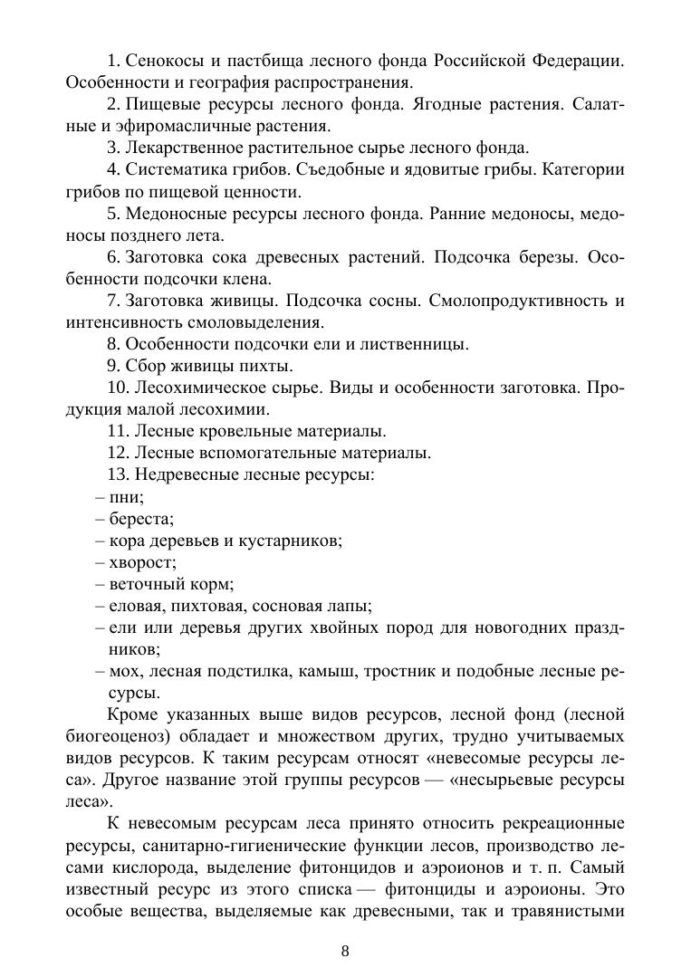 Практикум содержит краткие пояснения, задания и исходный материал для выполнения расчетных работ по основным темам специальных дисциплин «Ресурсный потенциал недревесной продукции леса», «Недревесная продукция леса», «Географические особенности распространения недревесной продукции леса», «Лесное ресурсоведение», «Оценка запасов недревесной продукции леса». Кроме расчетов по каждой теме предлагаются вопросы для самостоятельной работы. Приложены материалы фотофиксации по основным ресурсным видам растений и грибов. Даны пояснения и примеры по наиболее важным разделам курса, охватывающим основное содержание дисциплины. Пособие предназначено для студентов вузов, обучающихся по направлениям подготовки «Лесное дело» (профили «Лесоведение и лесоводство» и «Охрана лесов от пожаров»), «Экология и природопользование» (профиль «Природопользование»), «Землеустройство и кадастры» (профиль «Земельный кадастр и кадастр недвижимости»), «Экономика» (профиль «Экономика природопользования»).
