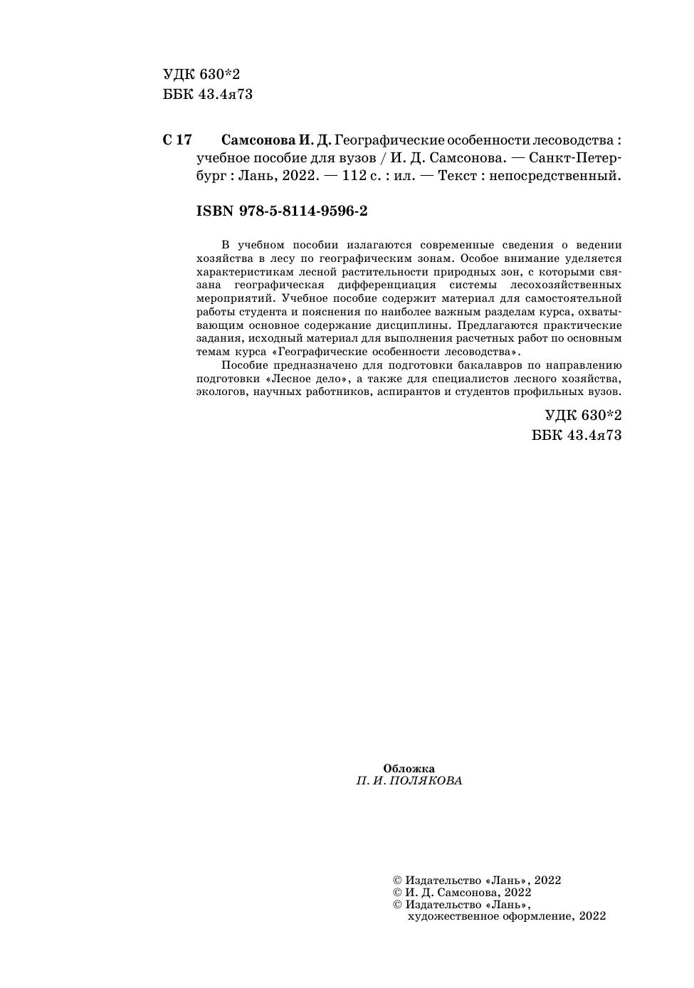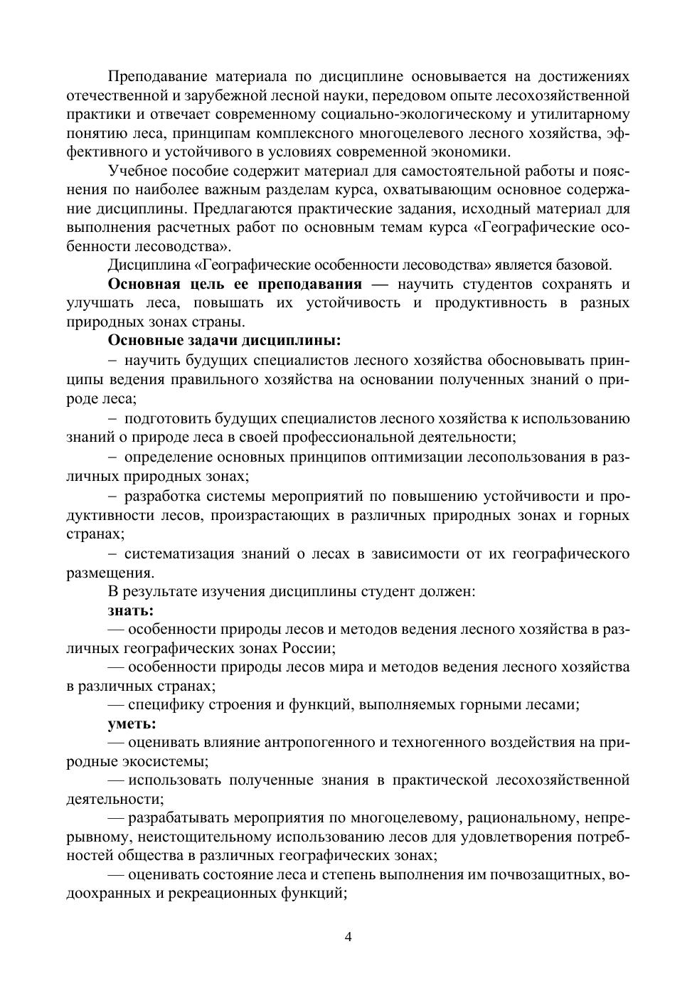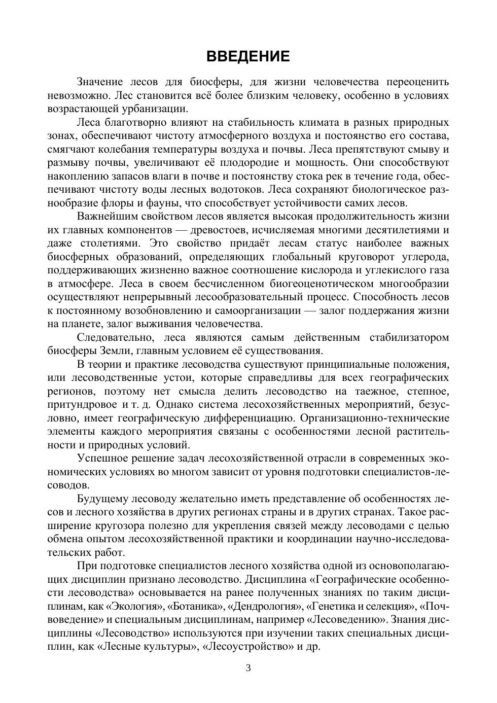 В учебном пособии излагаются современные сведения о ведении хозяйства в лесу по географическим зонам. Особое внимание уделяется характеристикам лесной растительности природных зон, с которыми связана географическая дифференциация системы лесохозяйственных мероприятий. Учебное пособие содержит материал для самостоятельной работы студента и пояснения по наиболее важным разделам курса, охватывающим основное содержание дисциплины. Предлагаются практические задания, исходный материал для выполнения расчетных работ по основным темам курса «Географические особенности лесоводства». Пособие предназначено для подготовки бакалавров по направлению подготовки «Лесное дело», а также для специалистов лесного хозяйства, экологов, научных работников, аспирантов и студентов профильных вузов.