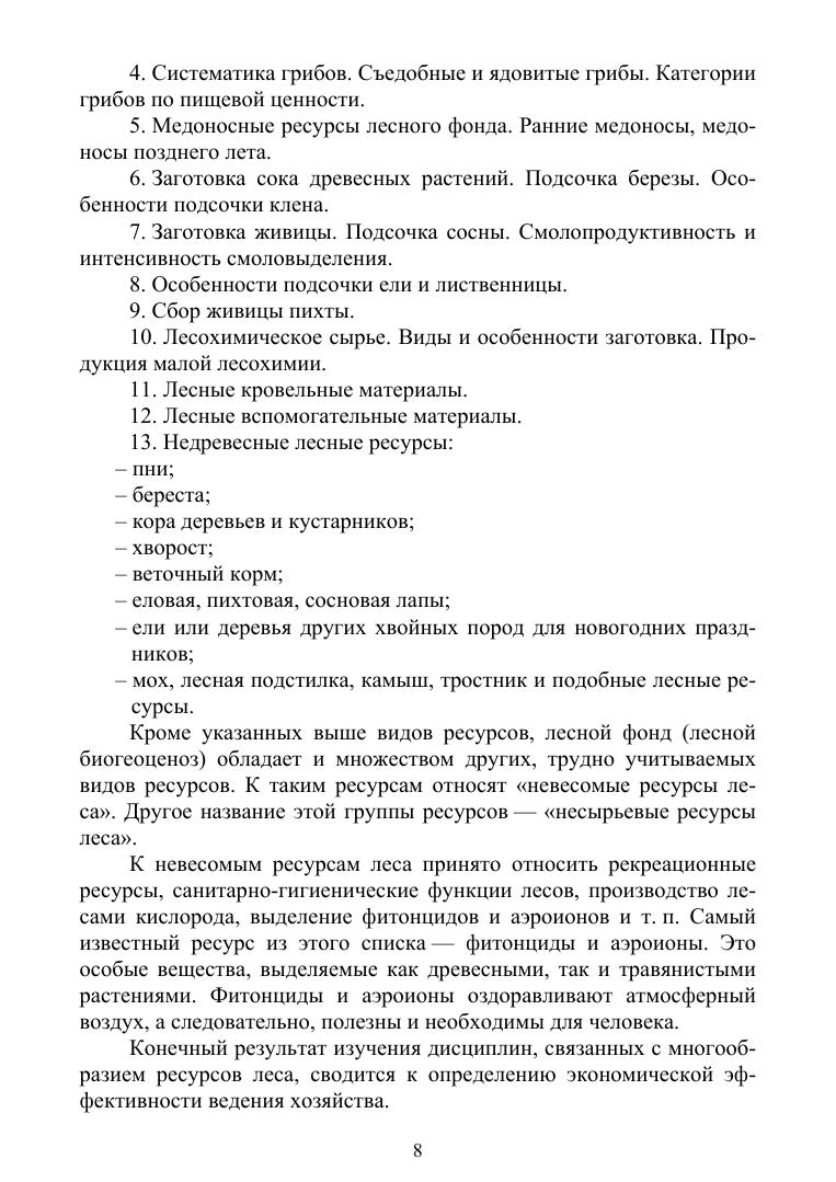 Учебное пособие содержит краткие пояснения, задания и исходный материал для выполнения расчетных работ по основным темам специальных дисциплин. Кроме расчетов по каждой теме предлагаются вопросы для самостоятельной работы. Приложены материалы фотофиксации по основным ресурсным видам растений и грибов. Даны пояснения и примеры по наиболее важным разделам курса, охватывающим основное содержание дисциплины. Соответствует современным требованиям Федерального государственного образовательного стандарта среднего профессионального образования и профессиональным квалификационным требованиям. Пособие предназначено для студентов техникумов и колледжей, обучающихся по специальности «Лесное и лесопарковое хозяйство».