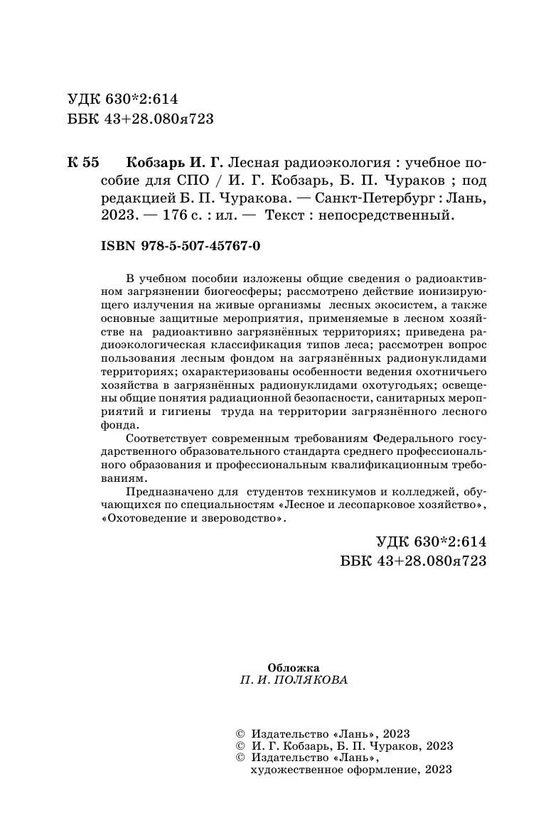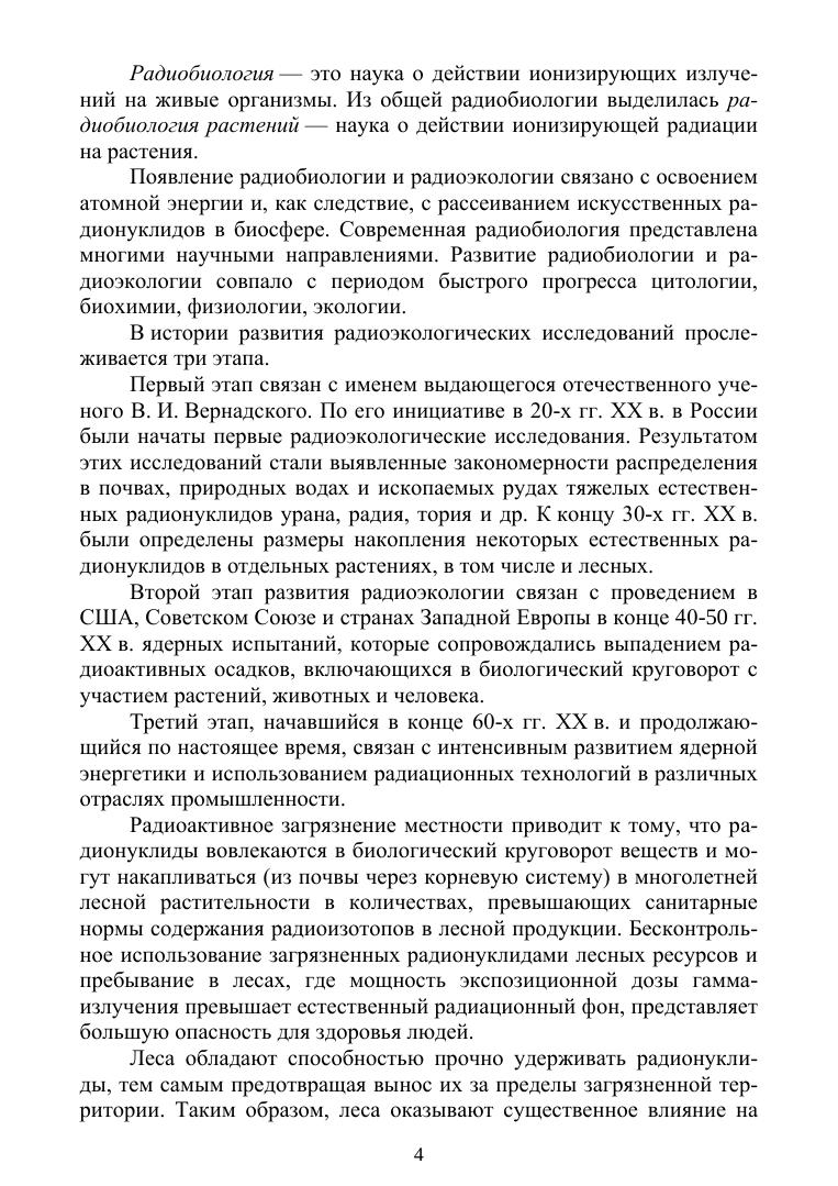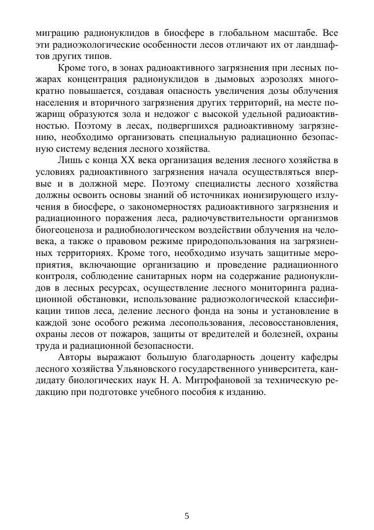 В учебном пособии изложены общие сведения о радиоактивном загрязнении биогеосферы, рассмотрено действие ионизирующего излучения на живые организмы лесных экосистем, а также основные защитные мероприятия, применяемые в лесном хозяйстве на радиоактивно загрязнённых территориях, приведена радиоэкологическая классификация типов леса, рассмотрен вопрос пользования лесным фондом на загрязнённых радионуклидами территориях, охарактеризованы особенности ведения охотничьего хозяйства в загрязнённых радионуклидами охотугодьях, освещены общие понятия радиационной безопасности, санитарных мероприятий и гигиены труда на территории загрязнённого лесного фонда. Соответствует современным требованиям Федерального государственного образовательного стандарта среднего профессионального образования и профессиональным квалификационным требованиям. Предназначено для студентов техникумов и колледжей, обучающихся по специальностям «Лесное и лесопарковое хозяйство», «Охотоведение и звероводство».