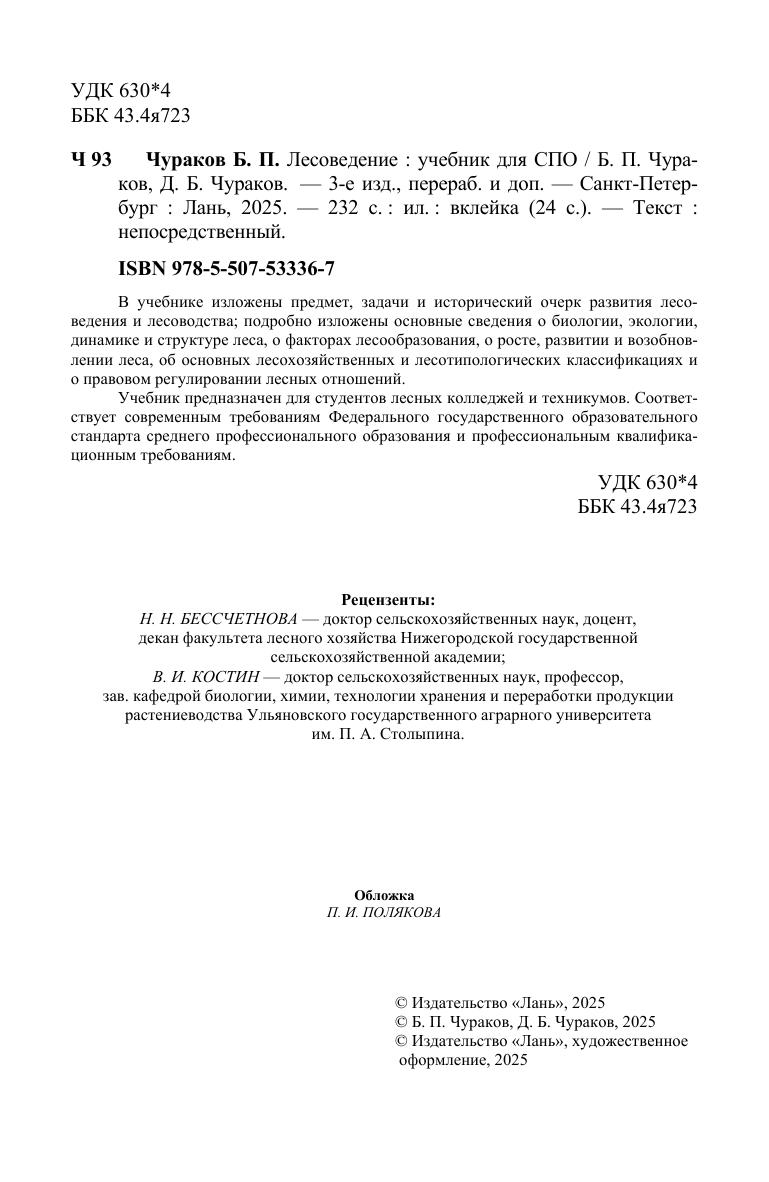 В учебнике изложены предмет, задачи и исторический очерк развития лесоведения и лесоводства, подробно изложены основные сведения о биологии, экологии, динамике и структуре леса, о факторах лесообразования, о росте, развитии и возобновлении леса, об основных лесохозяйственных и лесотипологических классификациях и о правовом регулировании лесных отношений. Учебник предназначен для студентов лесных колледжей и техникумов. Соответствует современным требованиям Федерального государственного образовательного стандарта среднего профессионального образования и профессиональным квалификационным требованиям.