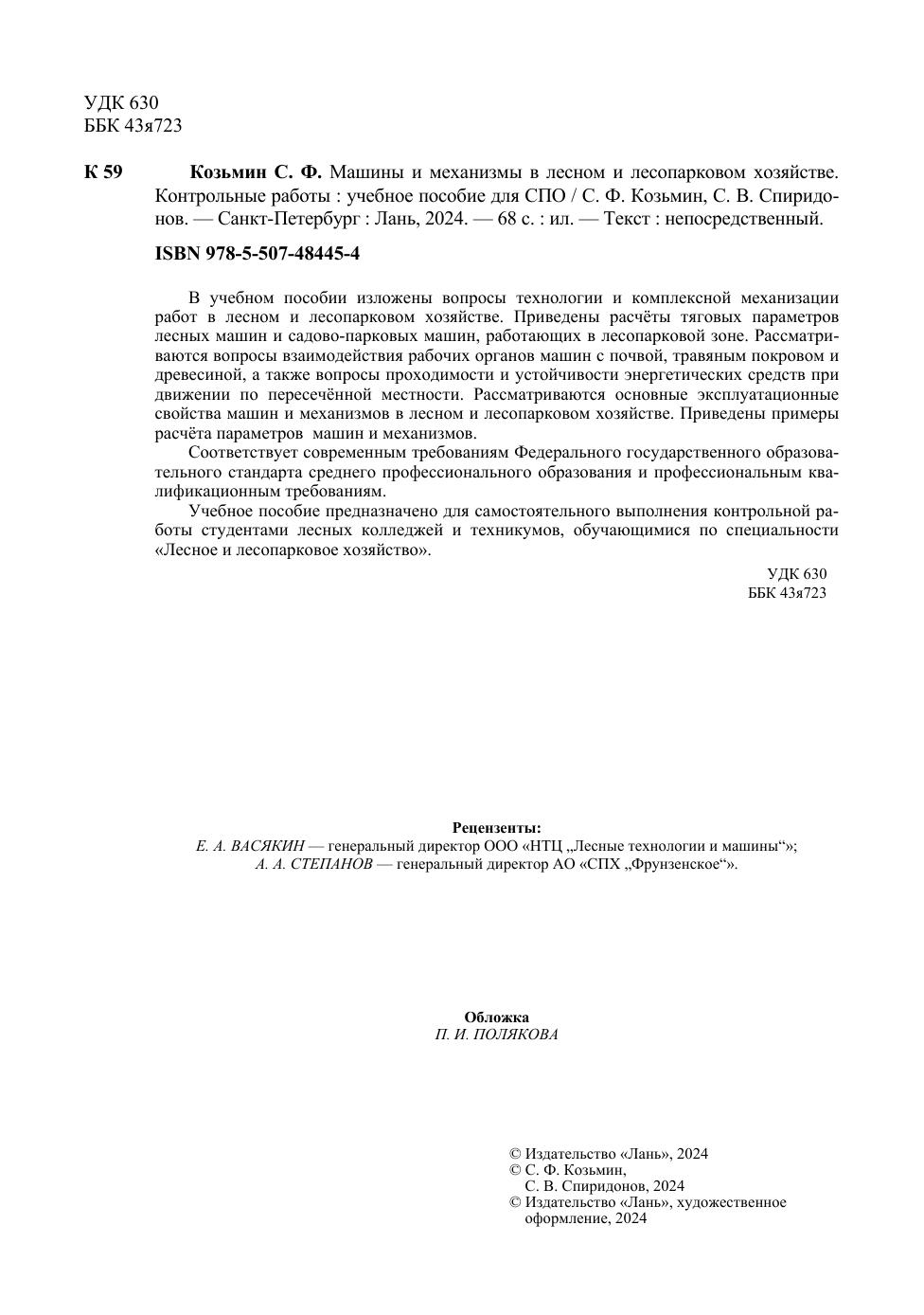 В учебном пособии изложены вопросы технологии и комплексной механизации работ в лесном и лесопарковом хозяйстве. Приведены расчёты тяговых параметров лесных машин и садово-парковых машин, работающих в лесопарковой зоне. Рассматриваются вопросы взаимодействия рабочих органов машин с почвой, травяным покровом и древесиной, а также вопросы проходимости и устойчивости энергетических средств при движении по пересечённой местности. Рассматриваются основные эксплуатационные свойства машин и механизмов в лесном и лесопарковом хозяйстве. Приведены примеры расчёта параметров машин и механизмов. Соответствует современным требованиям Федерального государственного образовательного стандарта среднего профессионального образования и профессиональным квалификационным требованиям. Учебное пособие предназначено для самостоятельного выполнения контрольной работы студентами лесных колледжей и техникумов, обучающимися по специальности «Лесное и лесопарковое хозяйство».