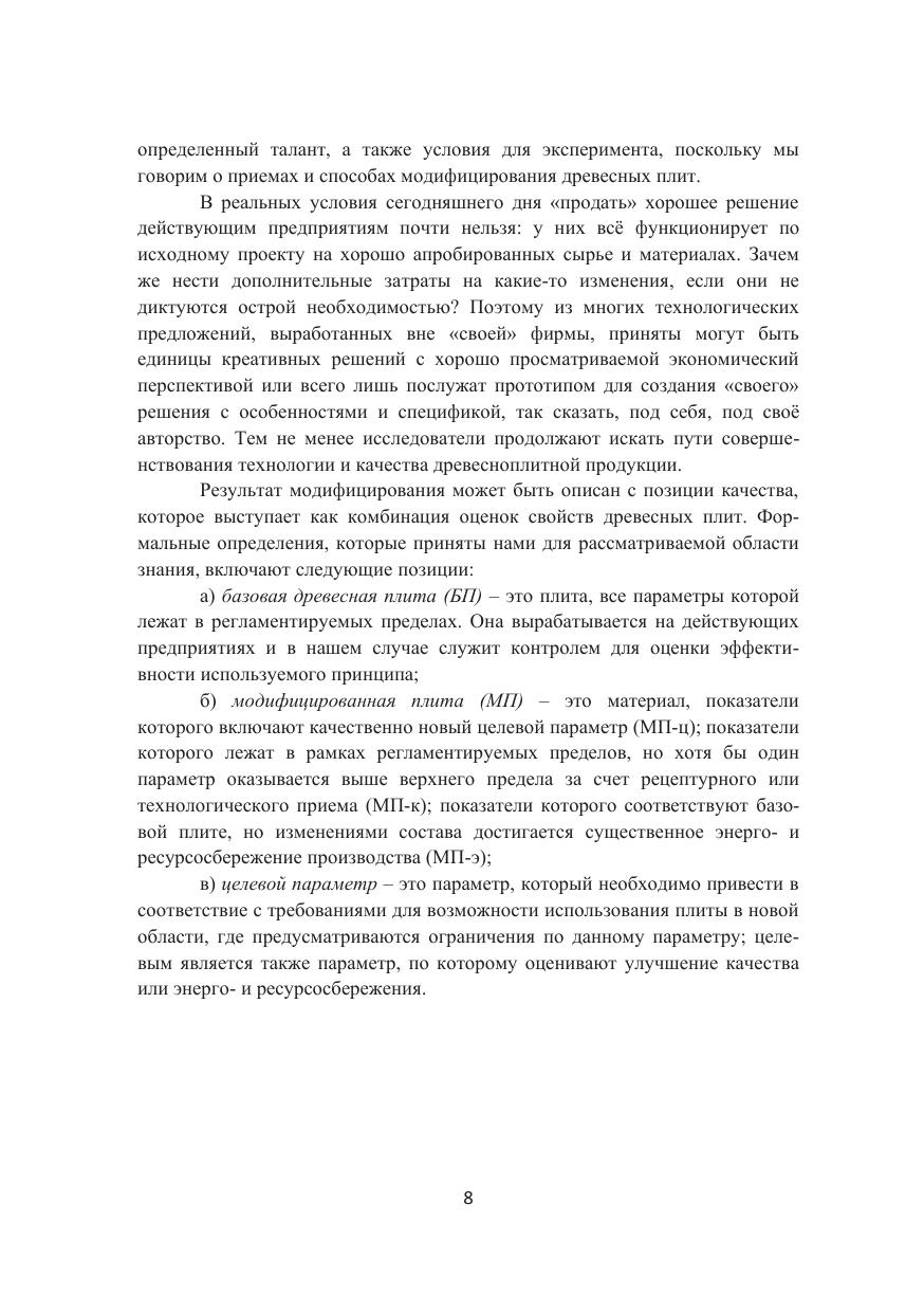 Представлены основные направления и конкретные технические решения модифицирования древесных плит. Выделены отдельные типичные принципы модифицирования, их обоснование и сущность, рассмотрение сопровождается конкретными примерами.