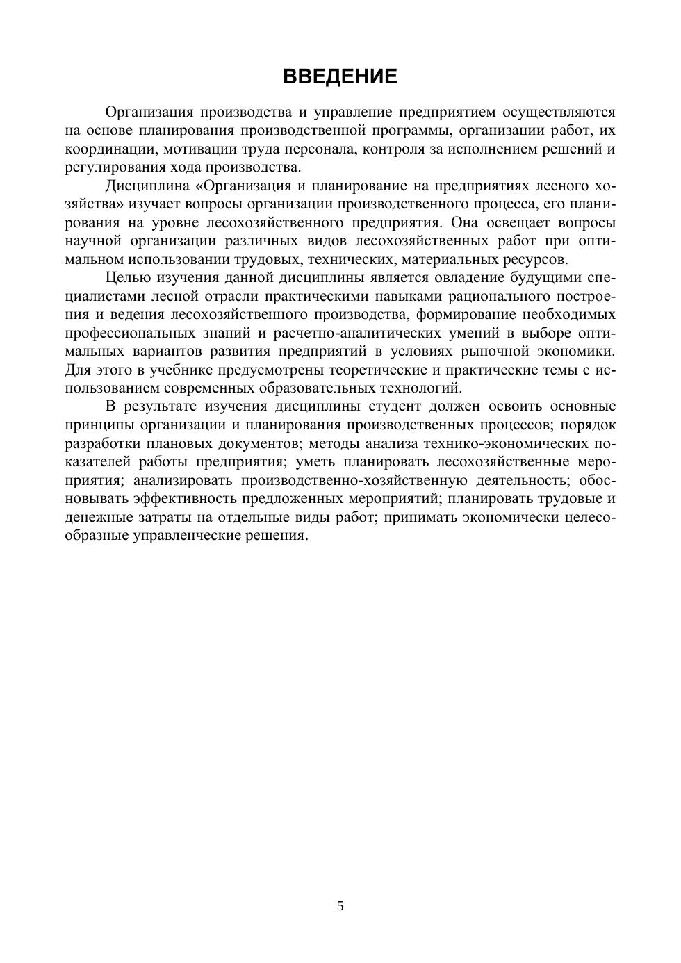Учебник содержит курс лекций, вопросы и практические задания по темам, методику выполнения курсового проекта, оценочные средства и рекомендуемую литературу по дисциплине «Организация и планирование на предприятиях лесного хозяйства». Учебник разработан в соответствии с требованиями ФГОС ВО, учитывает современные тенденции развития лесного хозяйства и предназначен для обучающихся по направлению подготовки «Лесное дело» (уровень бакалавриата), может быть полезен преподавателям высшей школы и специалистам лесной отрасли.