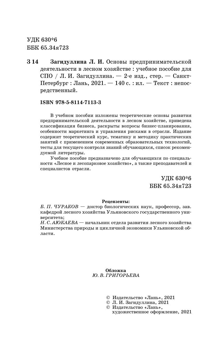 В учебном пособии изложены теоретические основы развития предпринимательской деятельности в лесном хозяйстве, приведена классификация бизнеса, раскрыты вопросы бизнес-планирования, особенности маркетинга и управления рисками в отрасли. Издание содержит теоретический курс, тематику и методику практических занятий с применением современных образовательных технологий, тесты для текущего контроля знаний обучающихся, список рекомендуемой литературы.