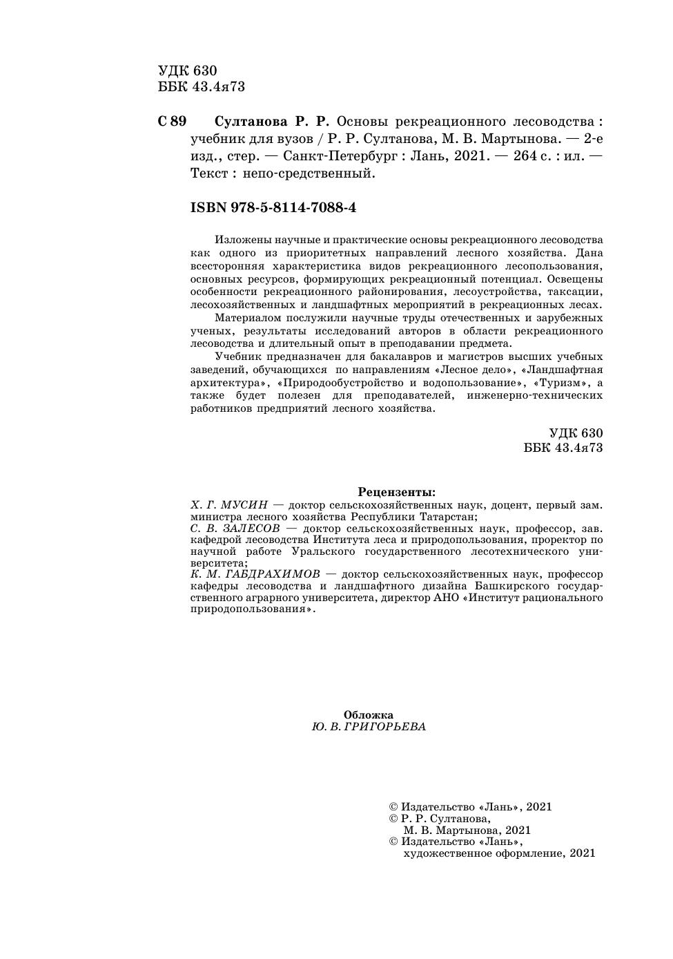 Для бакалавров и магистров высших учебных заведений, обучающихся по направлениям «Лесное дело», «Ландшафтная архитектура», «Природообустройство и водопользование», «Туризм», а также будет полезен для преподавателей, инженерно-технических работников предприятий лесного хозяйства.