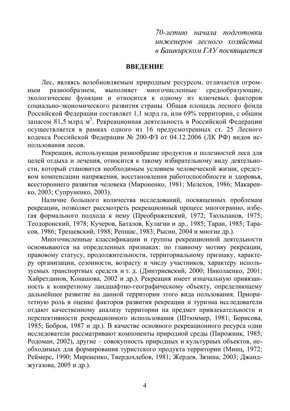 Материалом послужили научные труды отечественных и зарубежных ученых, результаты исследований авторов в области рекреационного лесоводства и длительный опыт в преподавании предмета.