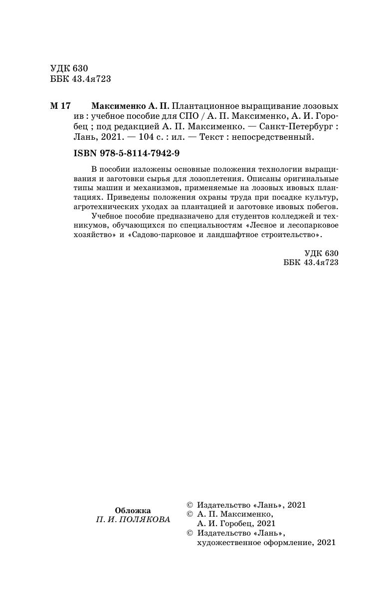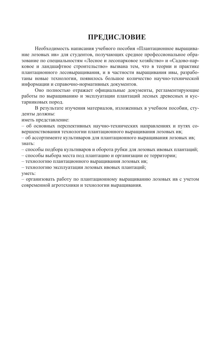 В пособии изложены основные положения технологии выращивания и заготовки сырья для лозоплетения. Описаны оригинальные типы машин и механизмов, применяемые на лозовых ивовых плантациях. Приведены положения охраны труда при посадке культур, агротехнических уходах за плантацией и заготовке ивовых побегов. Учебное пособие предназначено для студентов колледжей и техникумов, обучающихся по специальностям «Лесное и лесопарковое хозяйство» и «Садово-парковое и ландшафтное строительство».