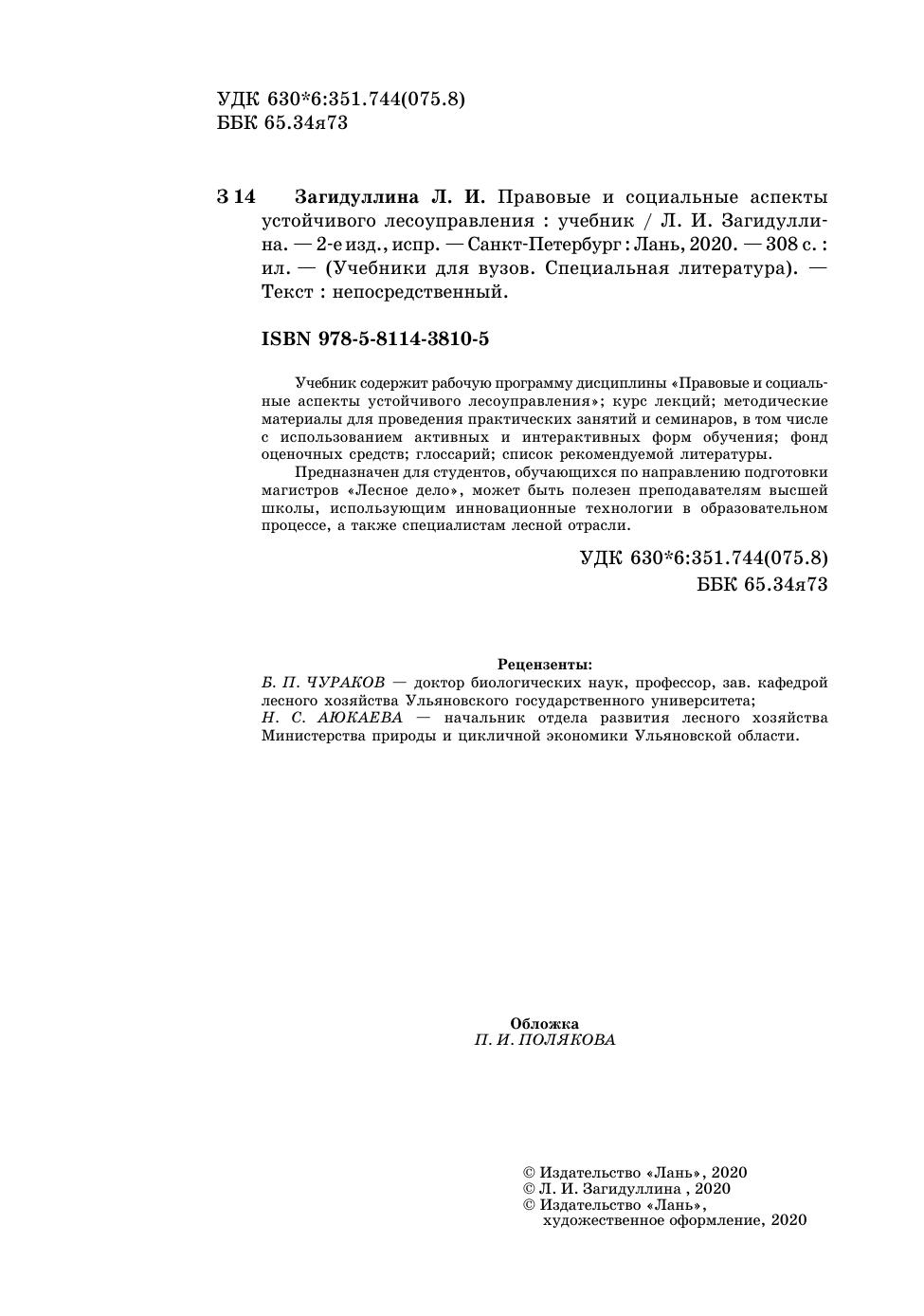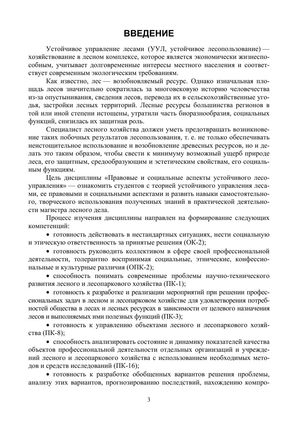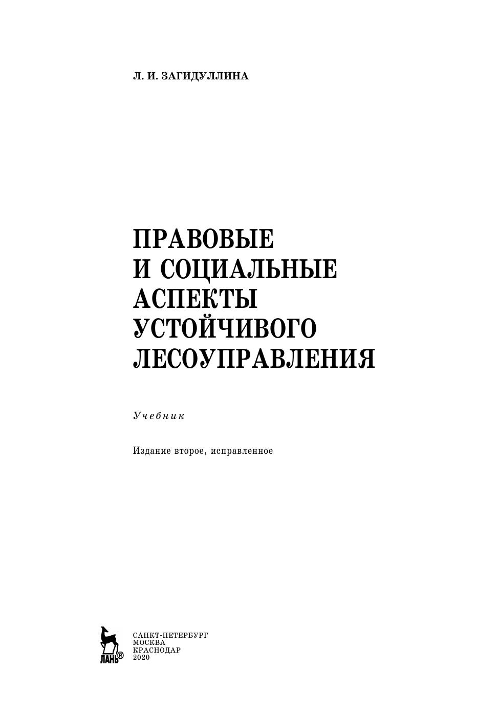 Учебник содержит рабочую программу дисциплины «Правовые и социальные аспекты устойчивого лесоуправления»; курс лекций; методические материалы для проведения практических занятий и семинаров, в том числе с использованием активных и интерактивных форм обучения; фонд оценочных средств; глоссарий; список рекомендуемой литературы.