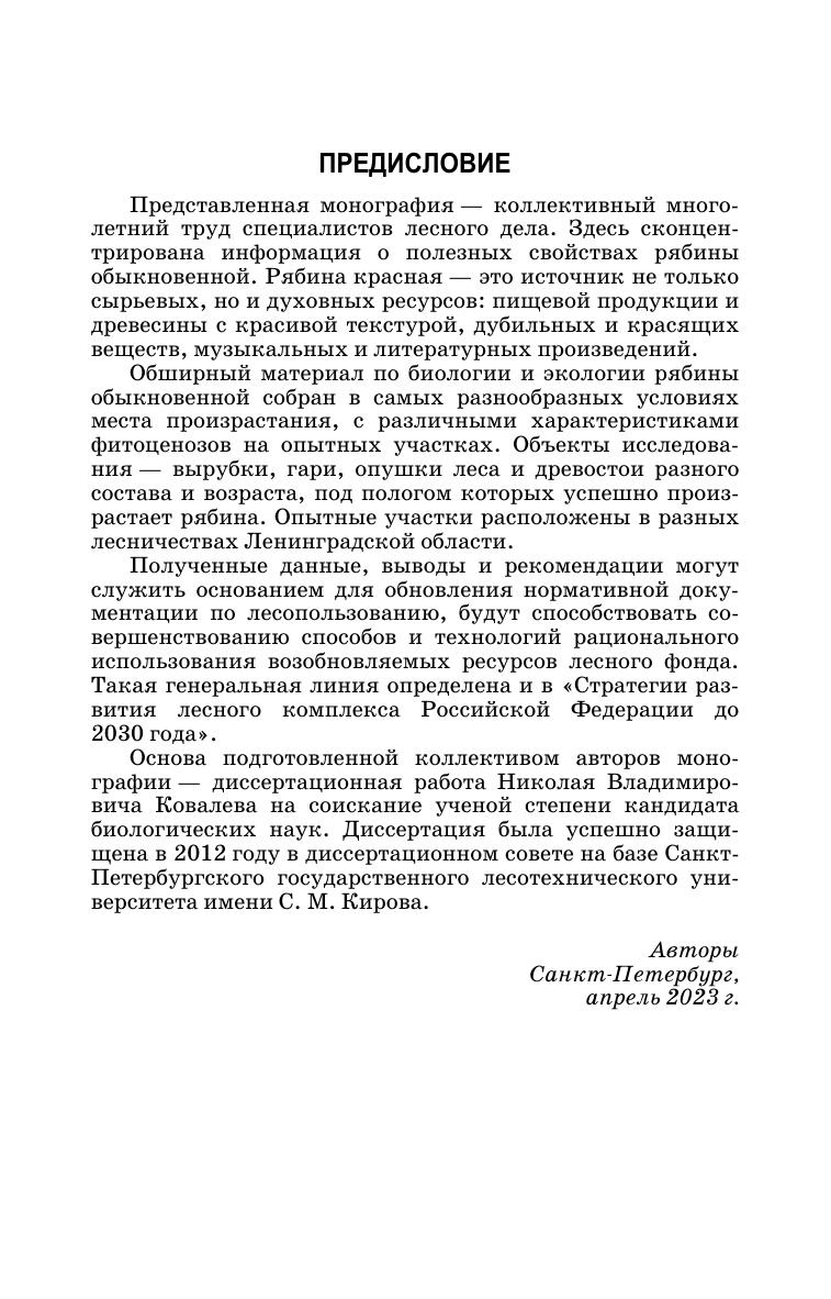 Монография содержит разносторонний материал по биологии и экологии рябины обыкновенной. Раскрыто значение популярного древесного растения как полиресурсного вида. Рябина дает человеку кроме обильного урожая поливитаминных ягод множество других полезных материалов — ценную древесину, дубильные вещества, красители. Книга содержит данные по срокам цветения, созревания ягод, повторяемости урожайных лет в зависимости от условий места произрастания. Книга адресована широкому кругу читателей, специалистам лесного хозяйства, студентам, обучающимся по направлению «Лесное дело» и всем, кто интересуется природными ресурсами русского леса.