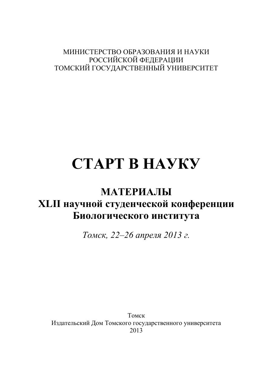 Старт в науку: материалы XLII научной студенческой конференции Биологического института. Томск, 22–26 апреля 2013 г.