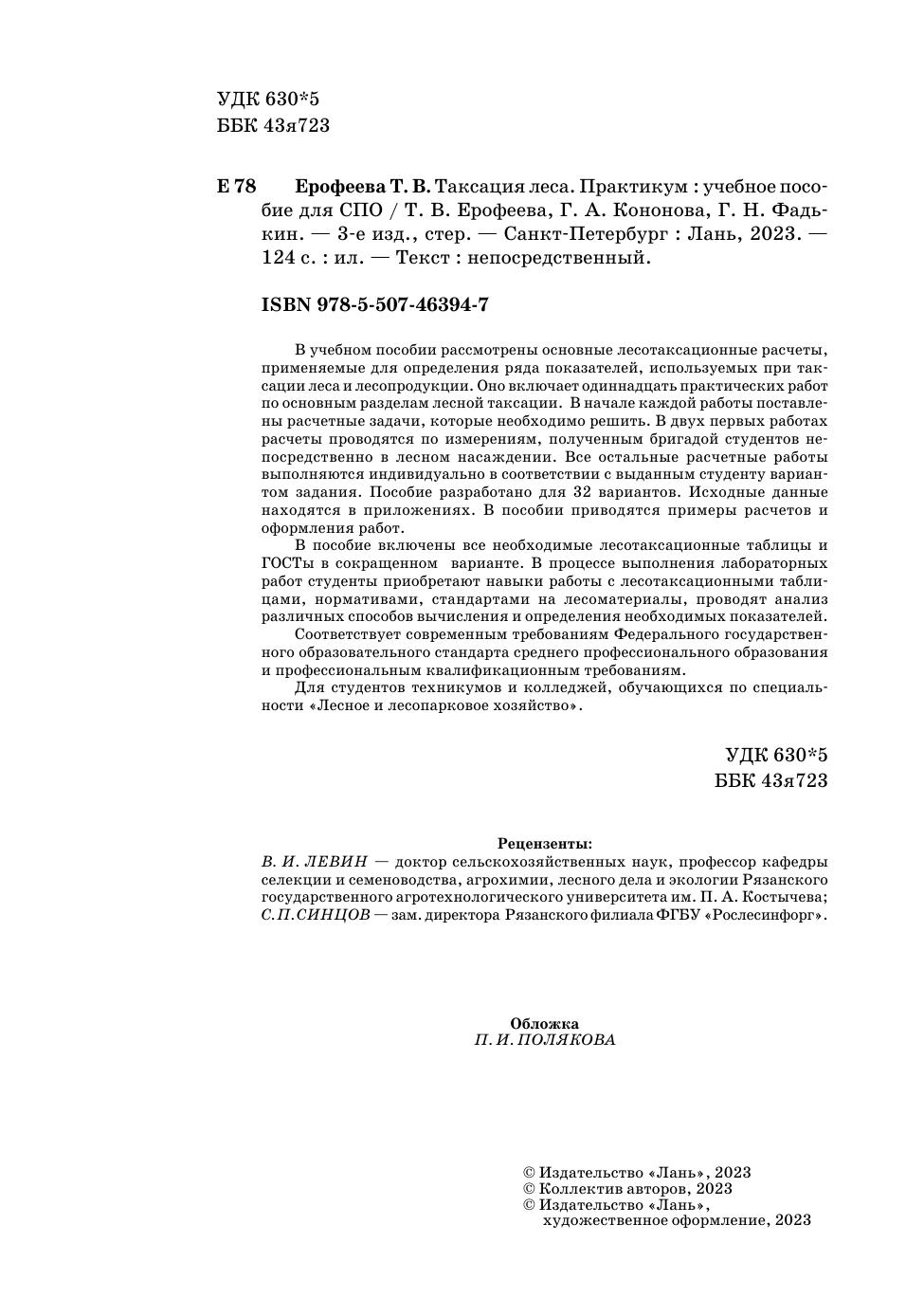 В учебном пособии рассмотрены основные лесотаксационные расчеты, применяемые для определения ряда показателей, используемых при таксации леса и лесопродукции. Оно включает одиннадцать практических работ по основным разделам лесной таксации. В начале каждой работы поставлены расчетные задачи, которые необходимо решить. В двух первых работах расчеты проводятся по измерениям, полученным бригадой студентов непосредственно в лесном насаждении. Все остальные расчетные работы выполняются индивидуально в соответствии с выданным студенту вариантом задания. Пособие разработано для 32 вариантов. Исходные данные находятся в приложениях. В пособии приводятся примеры расчетов и оформления работ В нем включены все необходимые лесотаксационные таблицы и ГОСТы в сокращенном варианте. В процессе выполнения лабораторных работ студенты приобретают навыки работы с лесотаксационными таблицами, нормативами, стандартами на лесоматериалы, проводят анализ различных способов вычисления и определения необходимых показателей. Соответствует современным требованиям Федерального государственного образовательного стандарта среднего профессионального образования и профессиональным квалификационным требованиям. Для студентов техникумов и колледжей, обучающихся по специальности «Лесное и лесопарковое хозяйство».