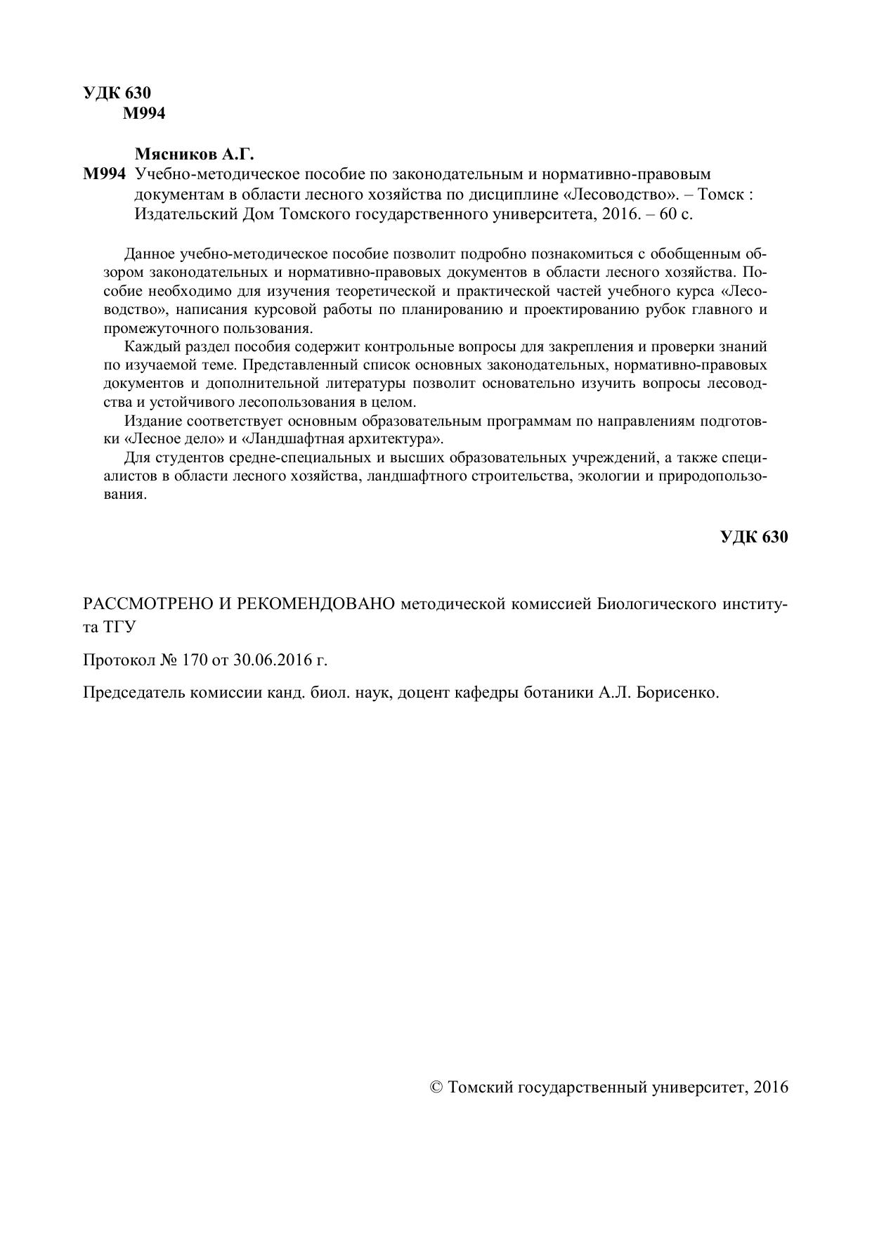 Учебно-методическое пособие по законодательным и нормативно-правовым документам в области лесного хозяйства по дисциплине «Лесоводство»