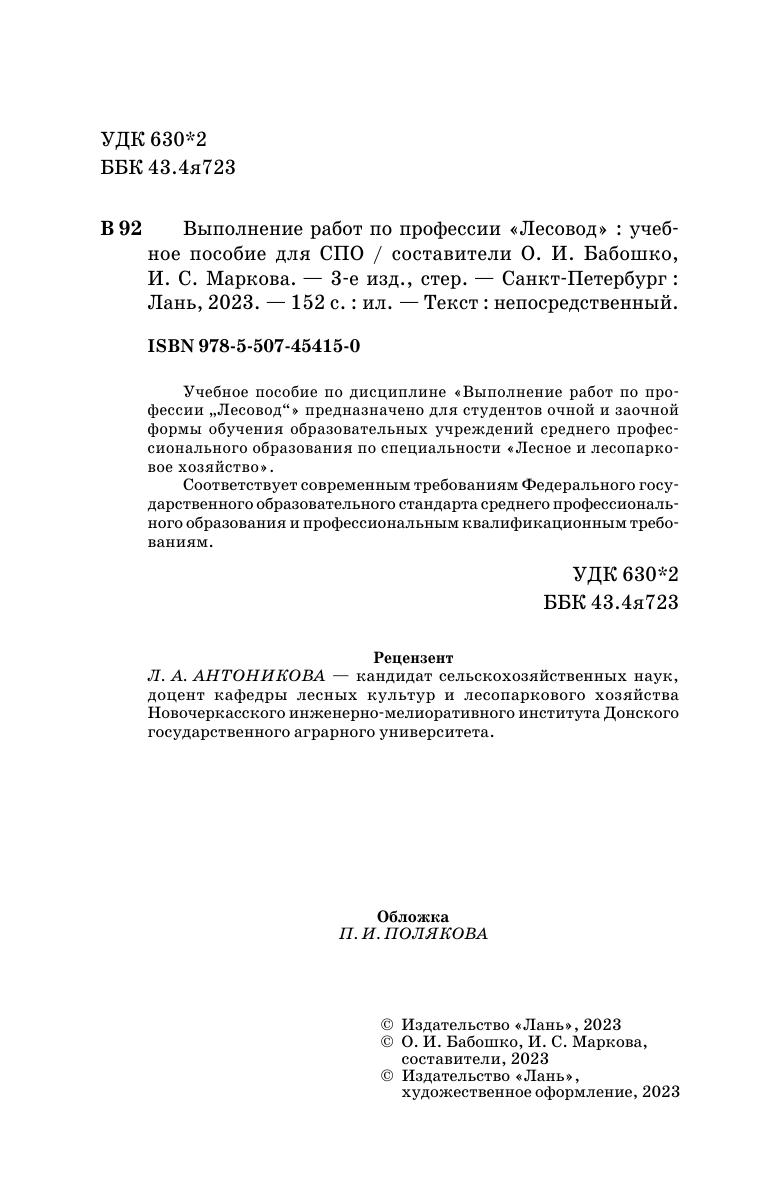 Учебное пособие по дисциплине «Выполнение работ по профессии „Лесовод“» предназначено для студентов очной и заочной формы обучения образовательных учреждений среднего профессионального образования по специальности «Лесное и лесопарковое хозяйство». Соответствует современным требованиям Федерального государственного образовательного стандарта среднего профессионального образования и профессиональным квалификационным требованиям.