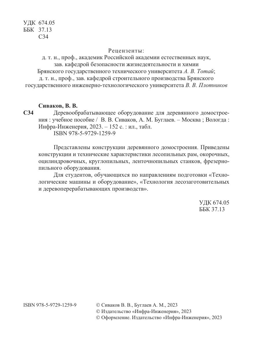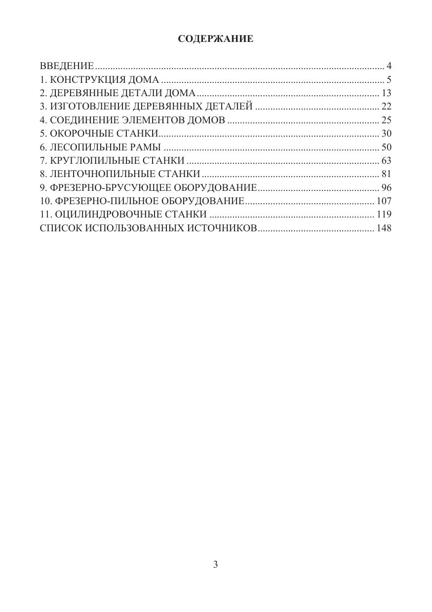 Представлены конструкции деревянного домостроения. Приведены конструкции и технические характеристики лесопильных рам, окорочных, оцилиндровочных, круглопильных, ленточнопильных станков, фрезерно-пильного оборудования.